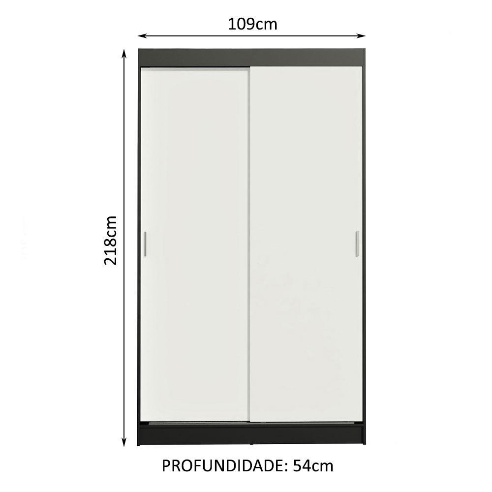 Guarda-Roupa Solteiro Madesa Tokio 2 Portas de Correr 2 Gavetas - Preto/Branco