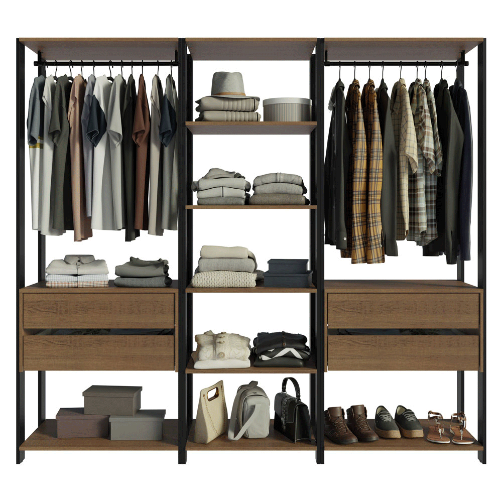 Guarda-Roupa Closet Modulado Valencia Madesa 199cm 4 Gavetas - Rustic/Preto 02
