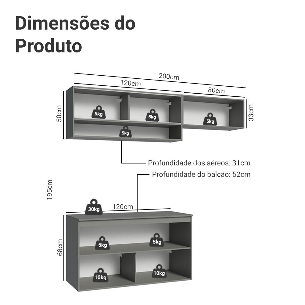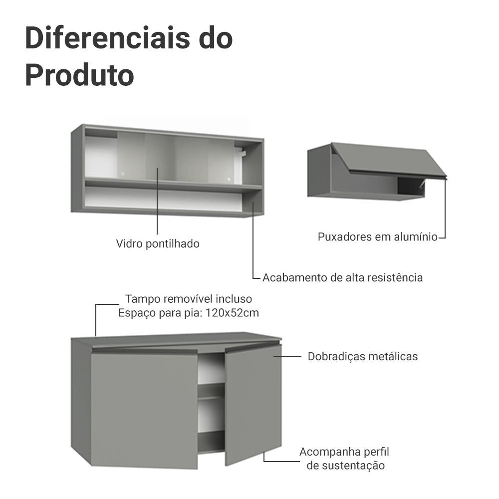 Armário de Cozinha Compacta Suspenso 200cm Cinza Nice Madesa XA07