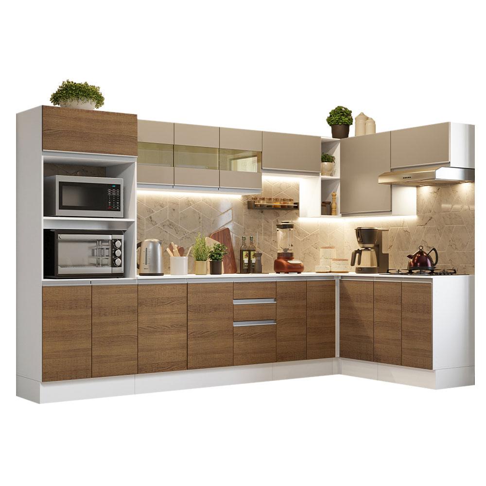 Armário de Cozinha Completa de Canto Madesa Smart 100% MDF - Branco/Rustic/Crema