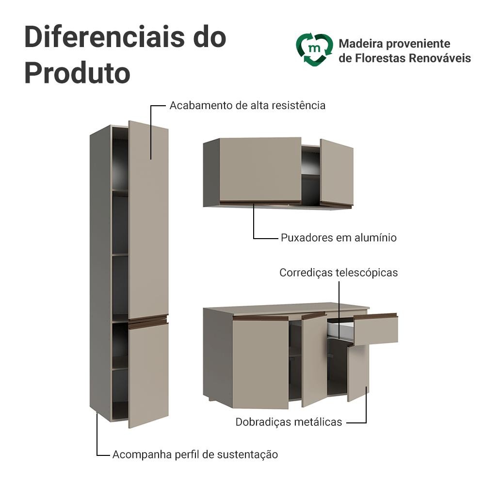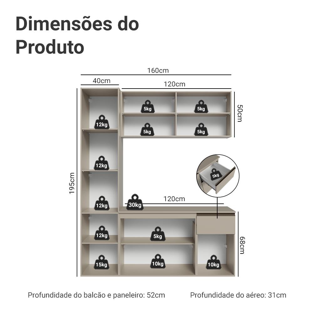 Armário de Cozinha Compacta 160 cm Suspenso Nice Madesa 02