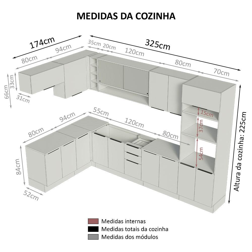Armário de Cozinha Completa de Canto 499cm Branco Stella Madesa 02