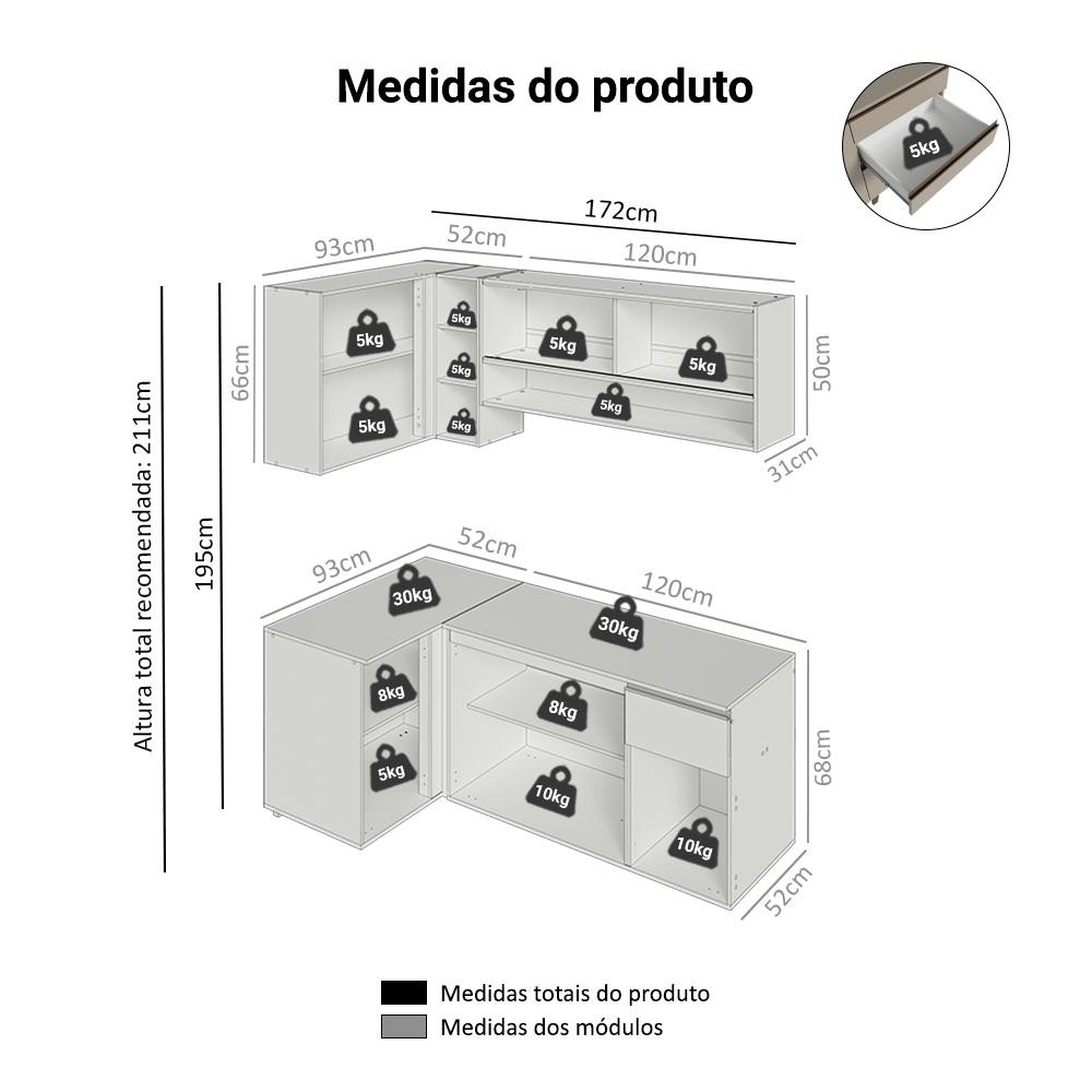 Armário de Cozinha Completa de Canto 265 cm Suspenso Nice Madesa 04