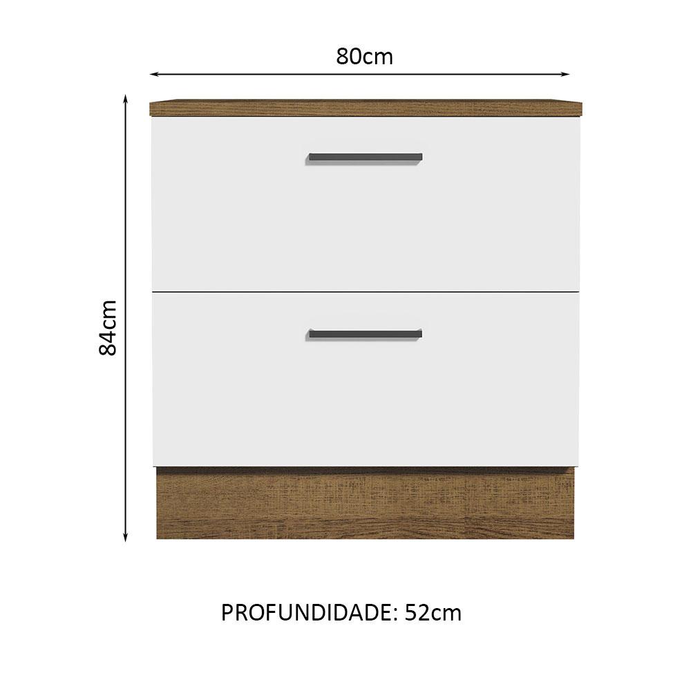 Balcão Armário de Cozinha 80 cm 2 Gavetas Rustic/Branco Agata Madesa