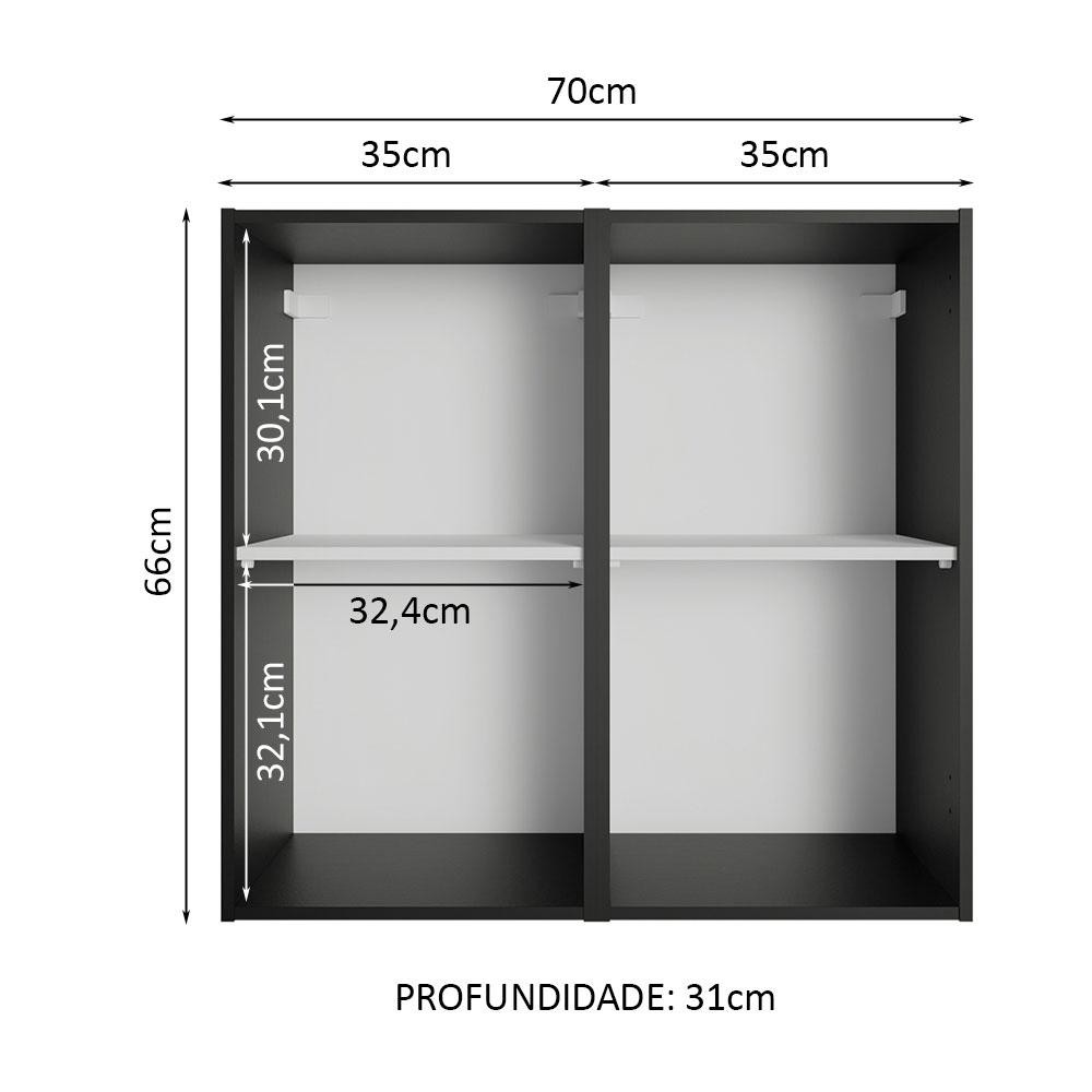Armário Aéreo 70 cm 2 Portas Reims Madesa