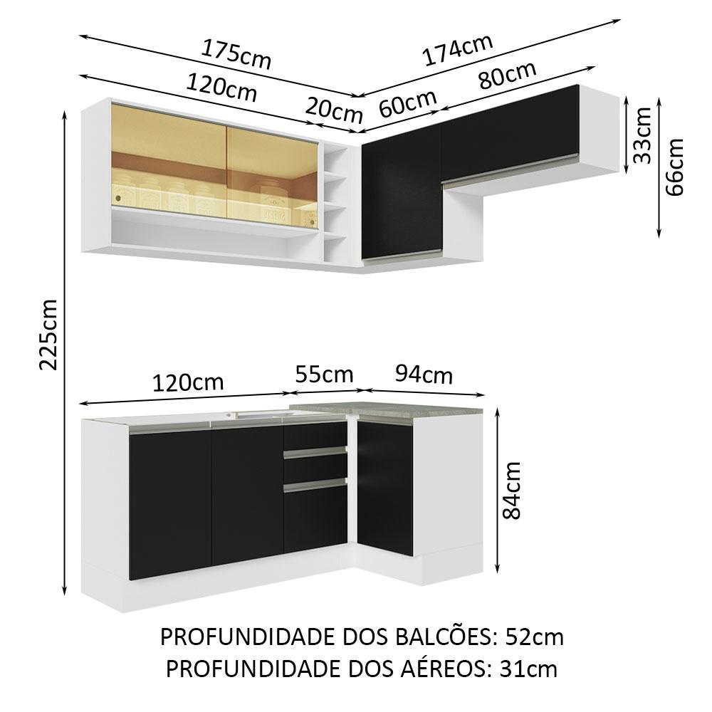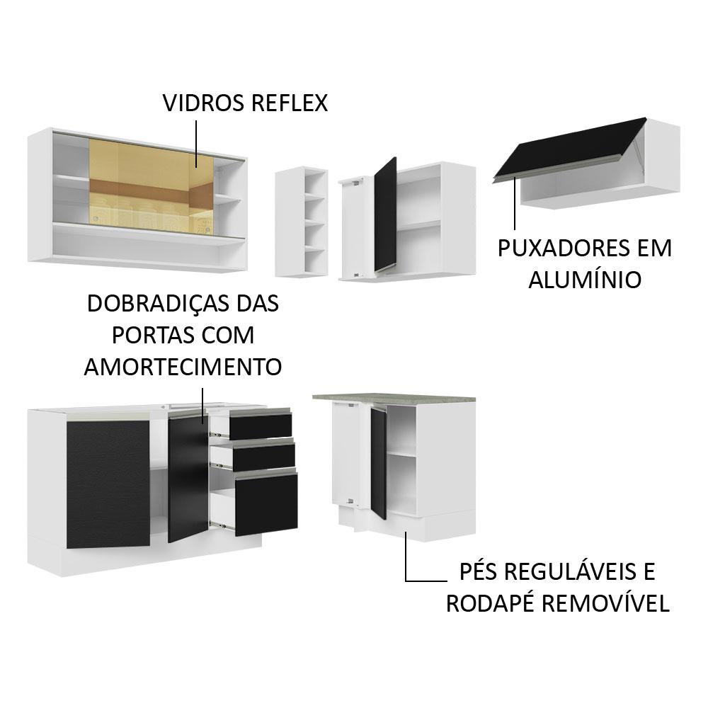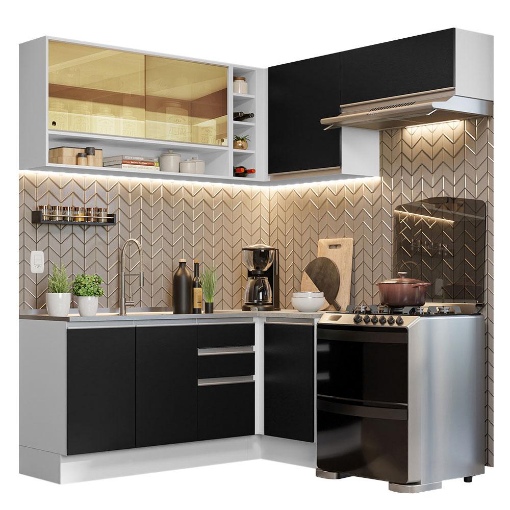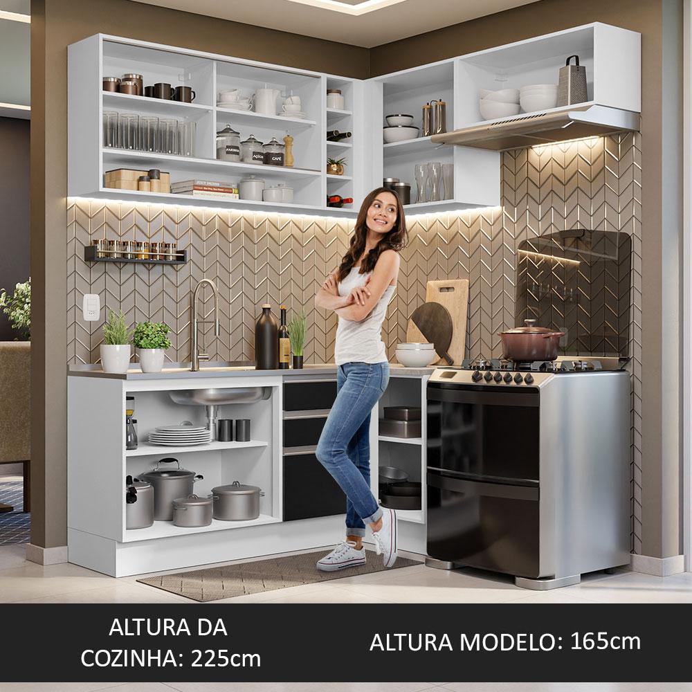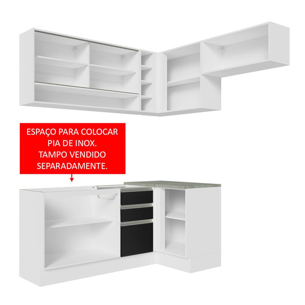 Armário de Cozinha Completa de Canto 349cm Branco/Preto Glamy Madesa 06