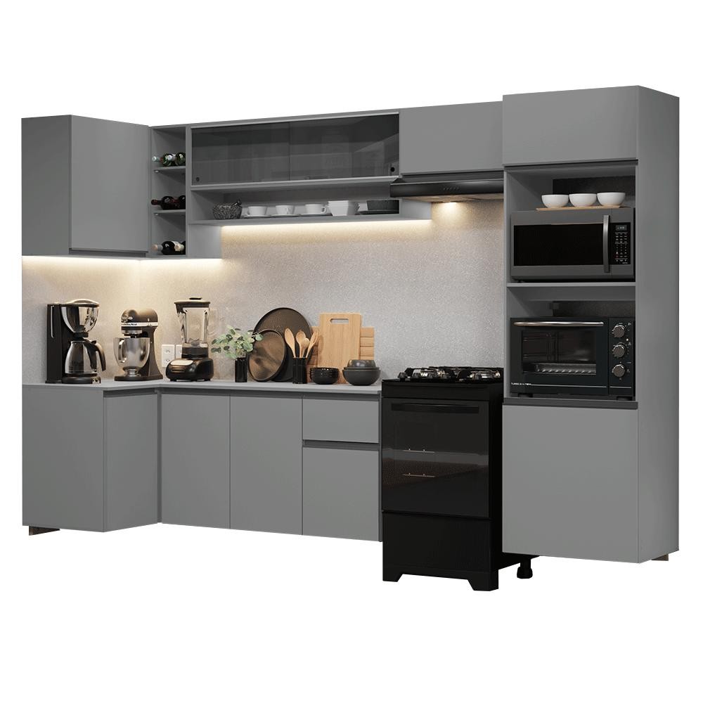 Armário de Cozinha Completa de Canto Suspenso 385cm Cinza Nice Madesa 02