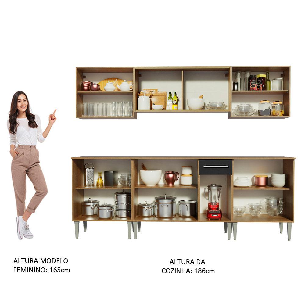 Cozinha Completa Madesa Emilly Wind com Balcão e Armário Aéreo - Rustic/Preto