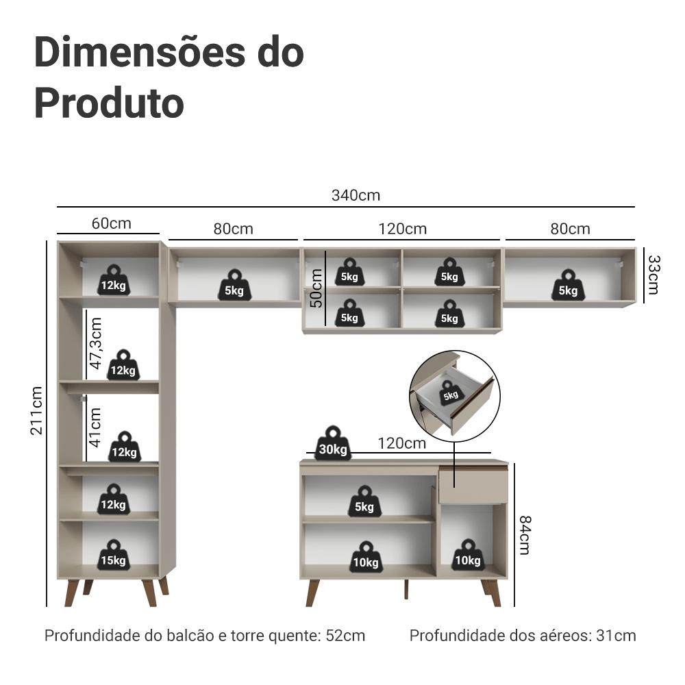Armário de Cozinha Completa 340 cm Crema Nice Madesa 01
