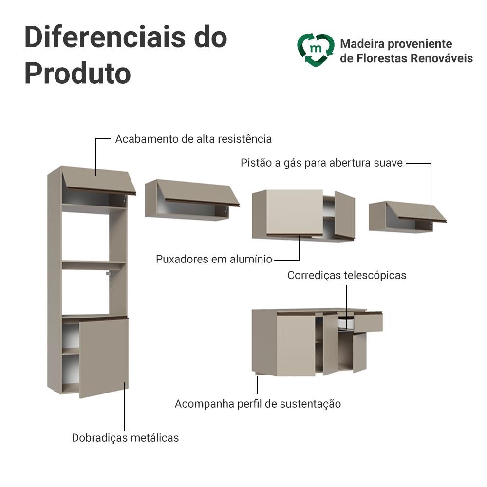 Armário de Cozinha Completa 340 cm Suspenso Crema Nice Madesa 02