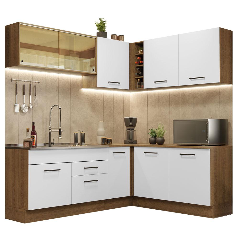 Cozinha Completa de Canto Madesa Agata 389001 com Armário e Balcão (Sem Tampo e Pia) - Rustic/Branco