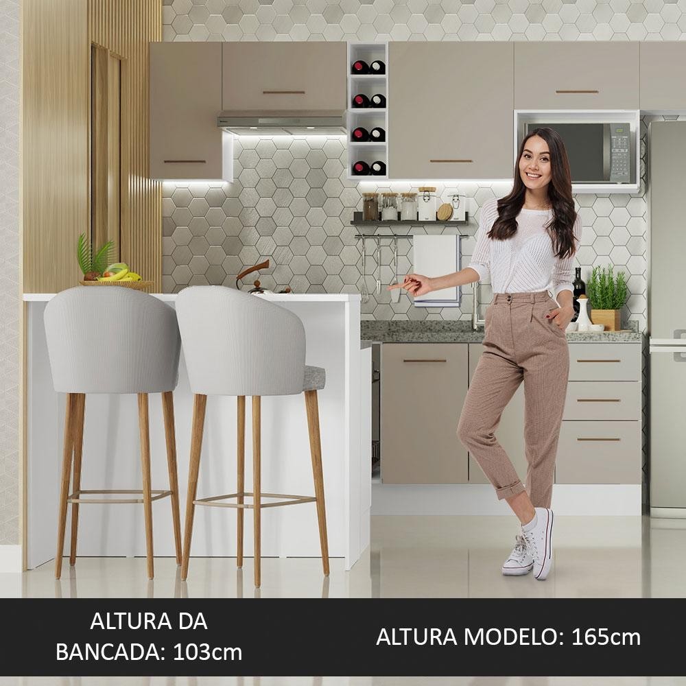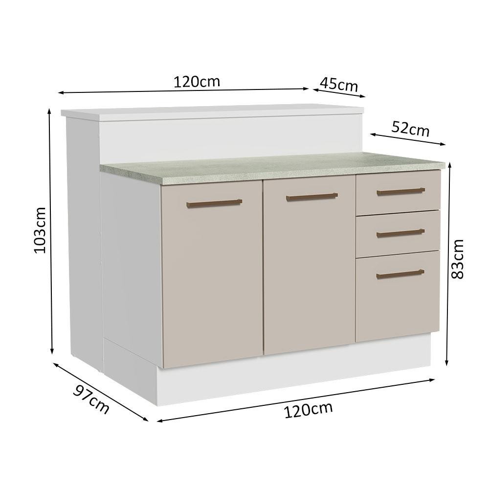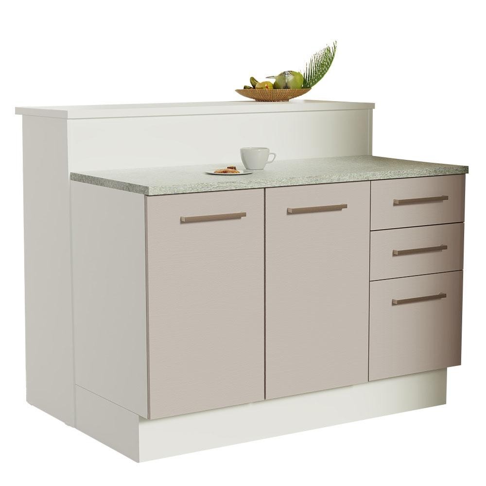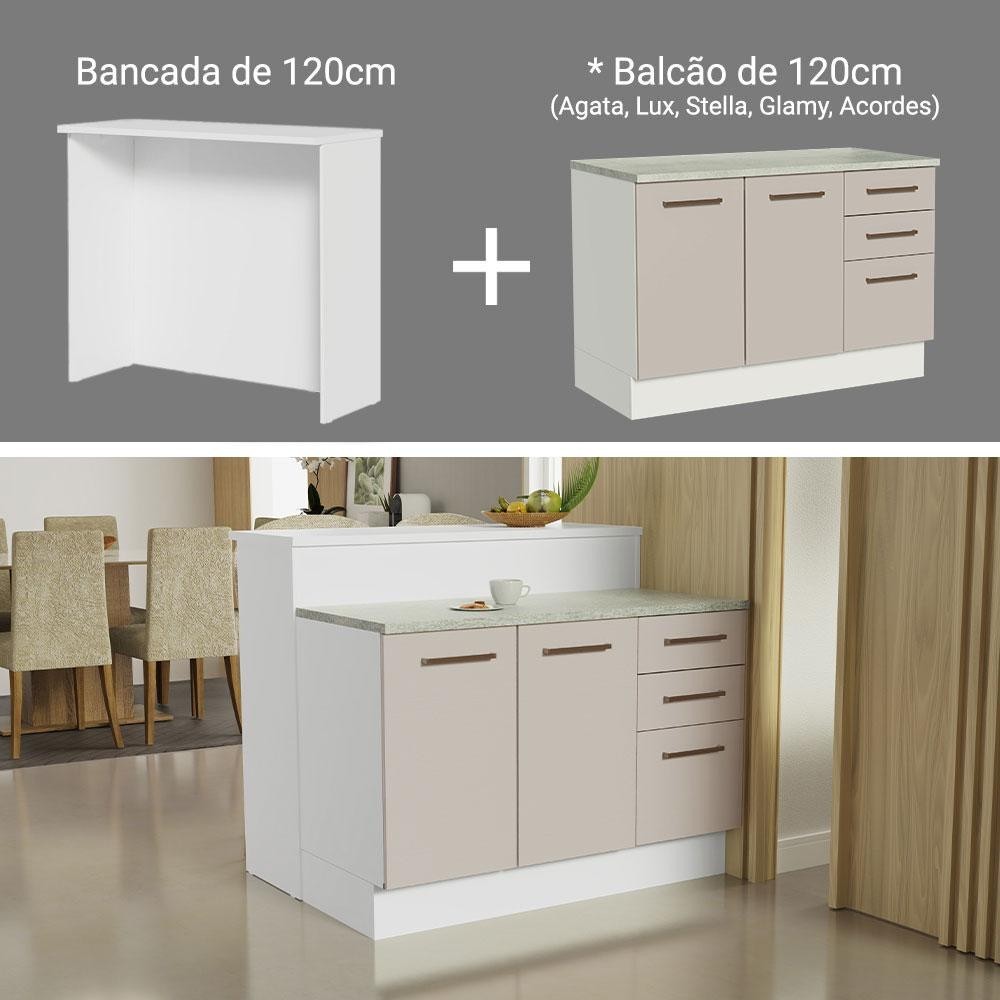 Ilha de Cozinha com Bancada e Balcão 120 cm Branco/Crema Agata Madesa