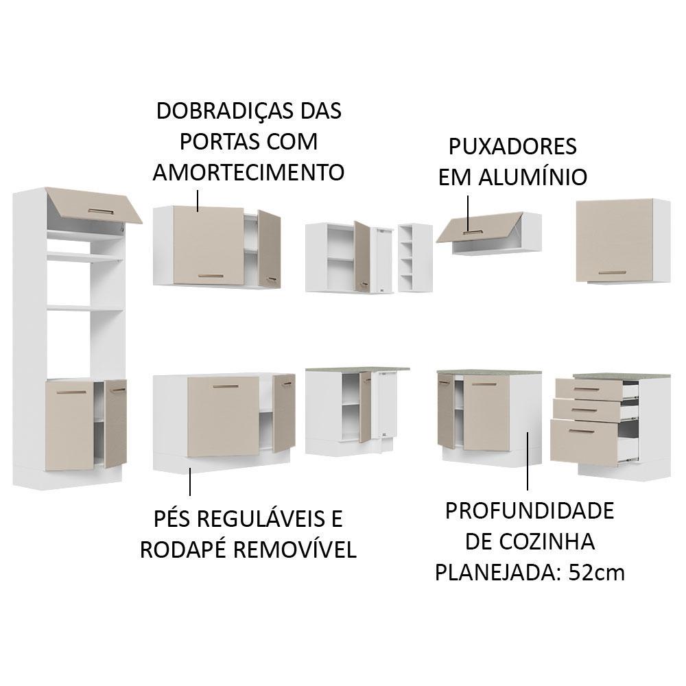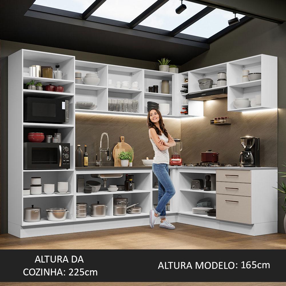 Armário de Cozinha Completa de Canto 479cm Branco/Crema Agata Madesa 01