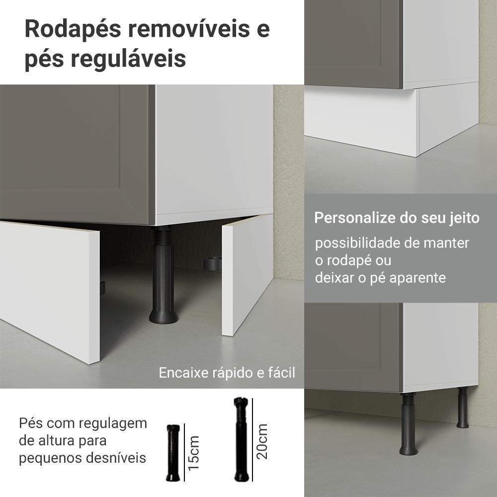 Balcão de Pia 120 cm 2 Portas 3 Gavetas (Sem Tampo) Branco/Cinza Vik Madesa