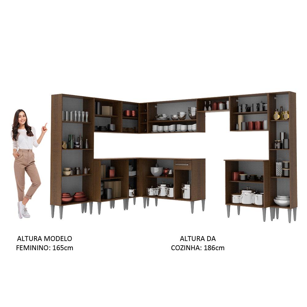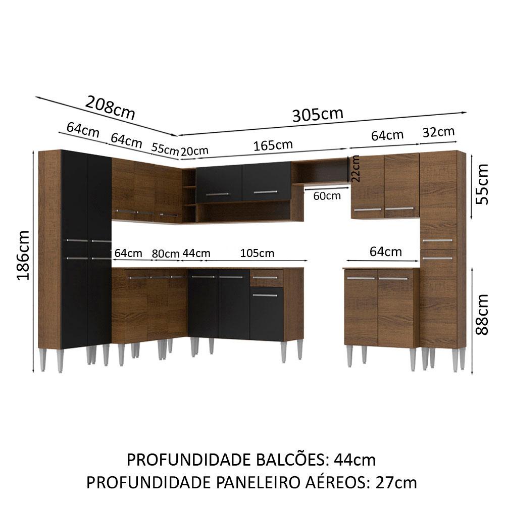 Cozinha Completa de Canto Reto Madesa Emilly Big com Armário e Balcão 21 Portas 1 Gaveta