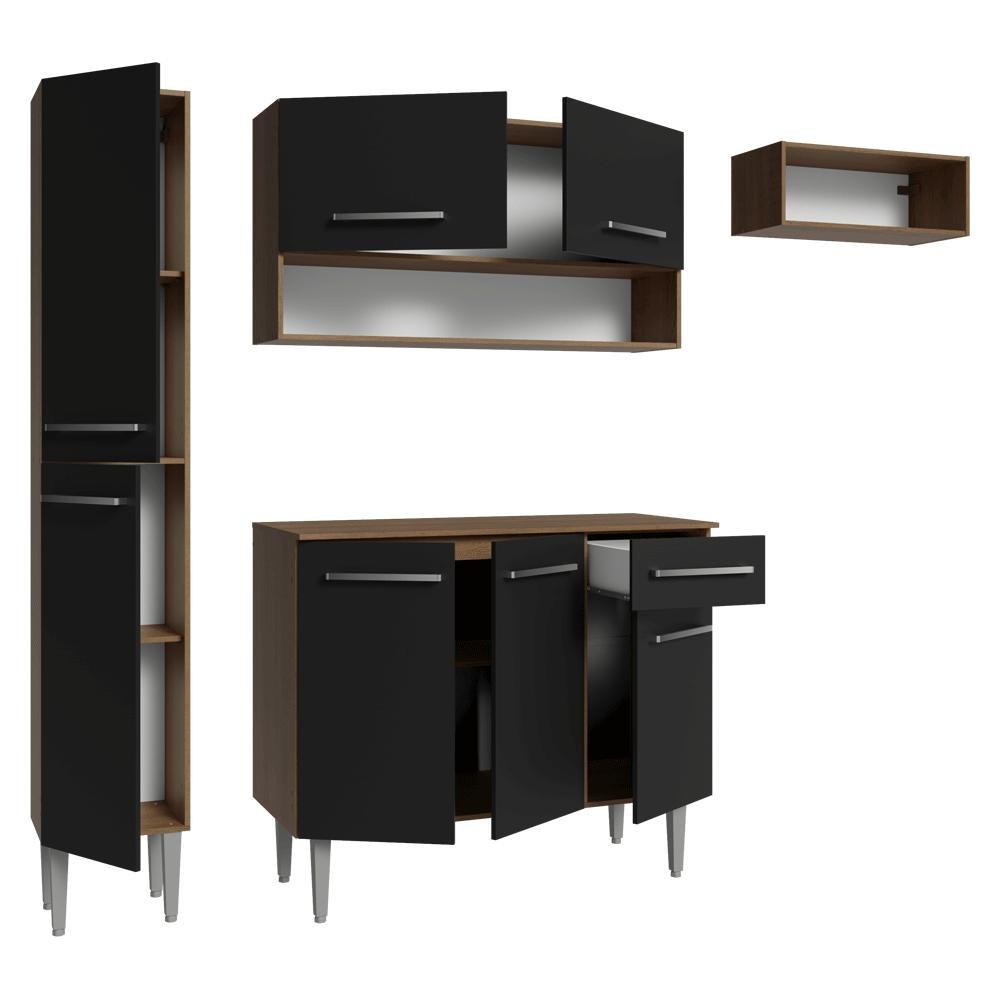Armário de Cozinha Completa 197 cm Rustic/Preto Emilly Madesa 02