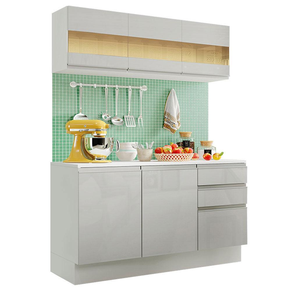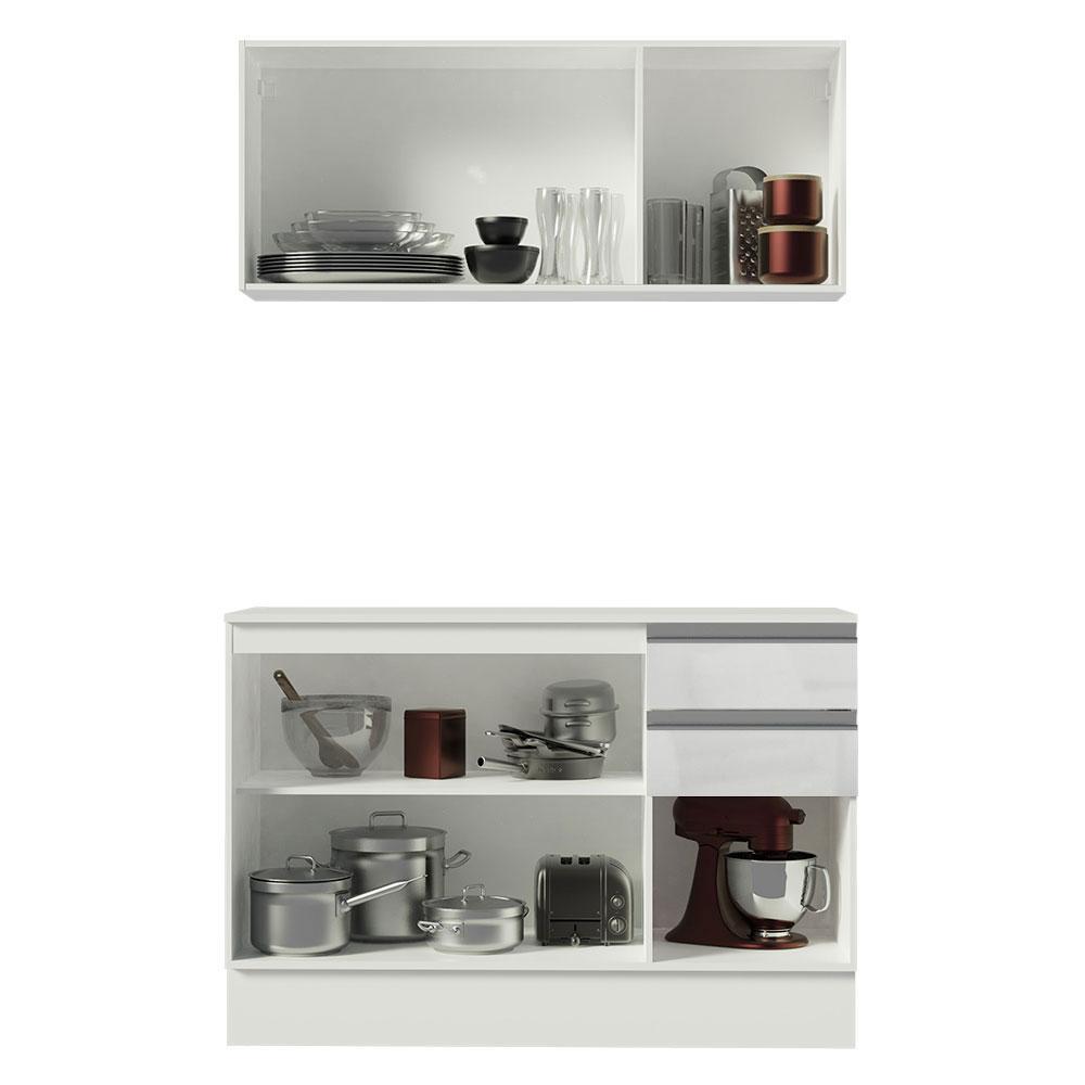 Armário de Cozinha Compacta 100% MDF 120 cm Frentes Branco Brilho Smart Madesa 01