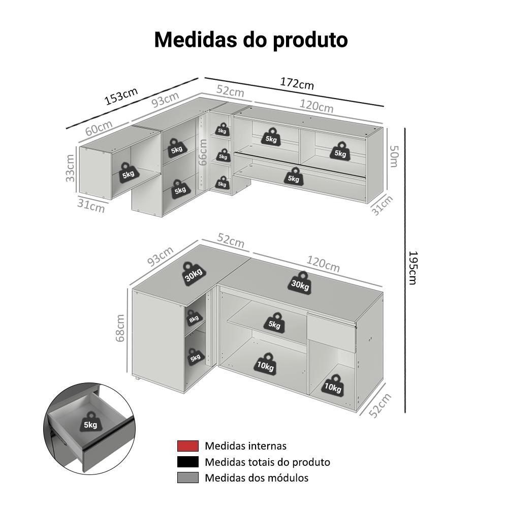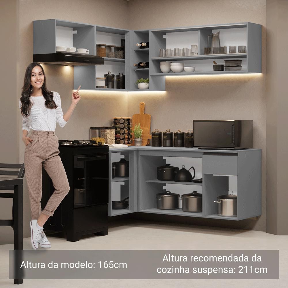 Armário de Cozinha Completa de Canto Suspenso 325cm Cinza Nice Madesa 01