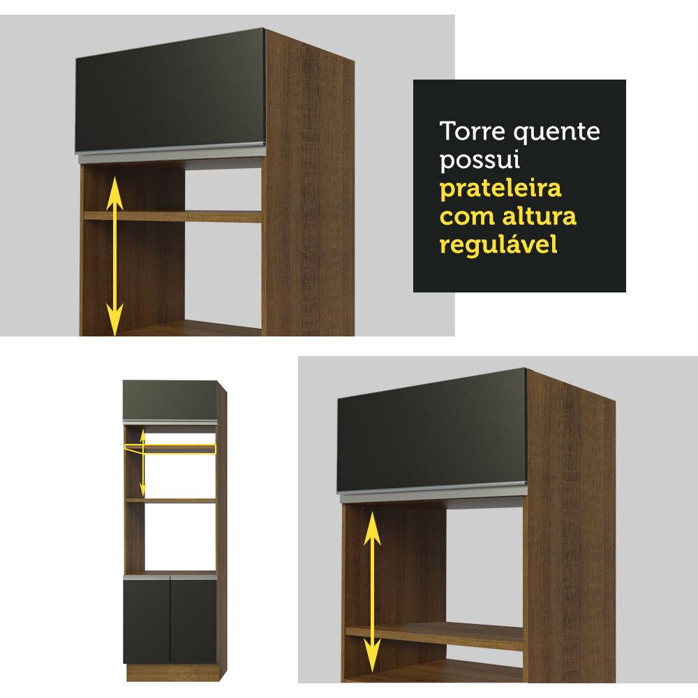 Cozinha Completa Madesa Safira com Armário e Balcão (Sem Tampo e Pia) - Rustic/Preto/Rustic