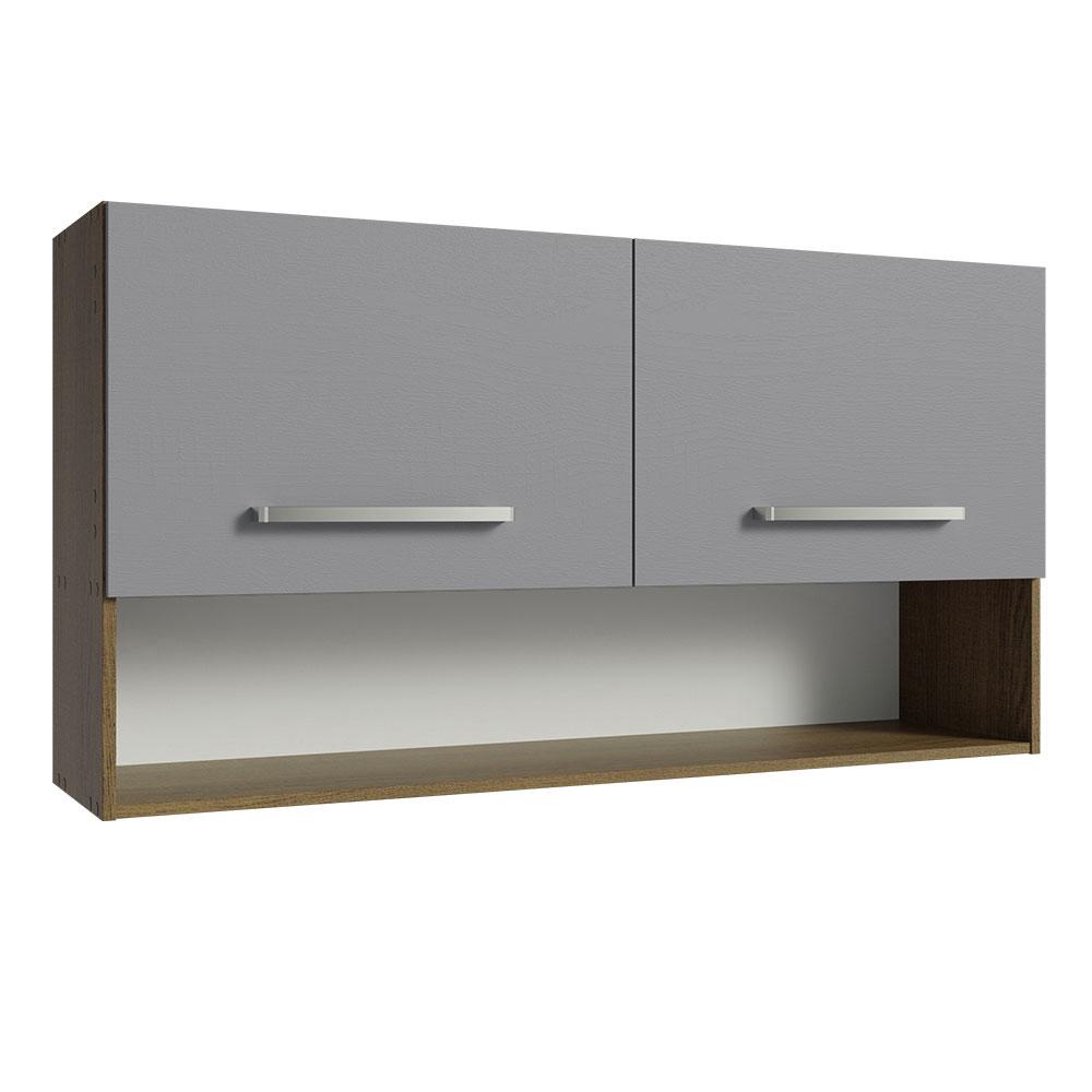 Armário Aéreo Cozinha 105cm 2 Portas 1 Nicho Rustic/Cinza Emilly Madesa