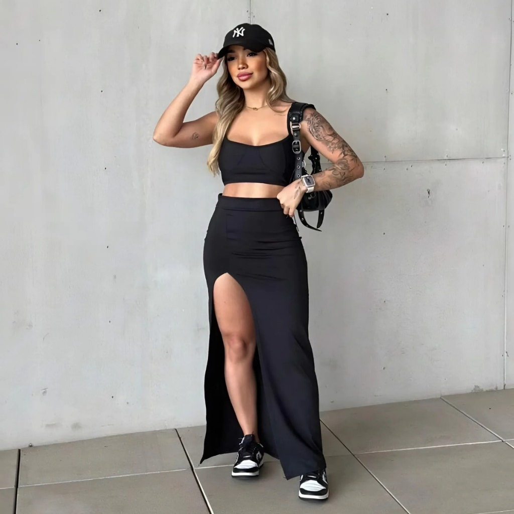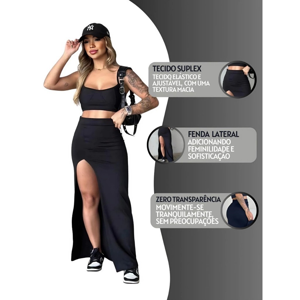 Saia Longa Fenda No Suplex Encorpada Modelo Gringa