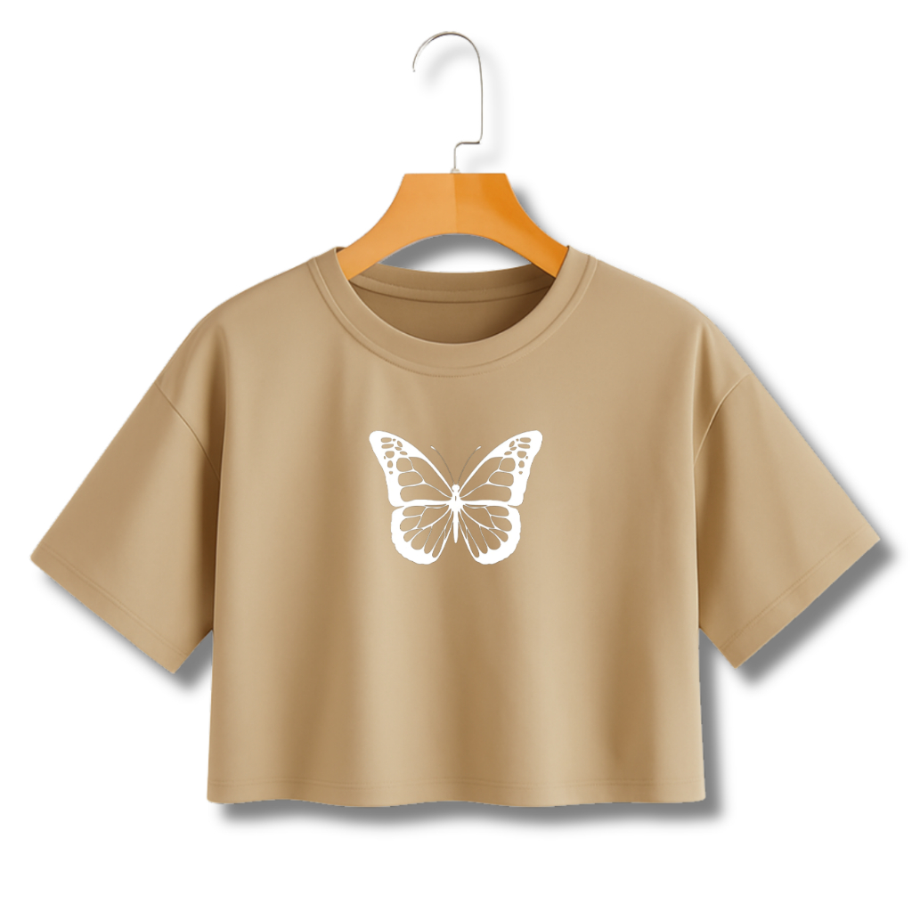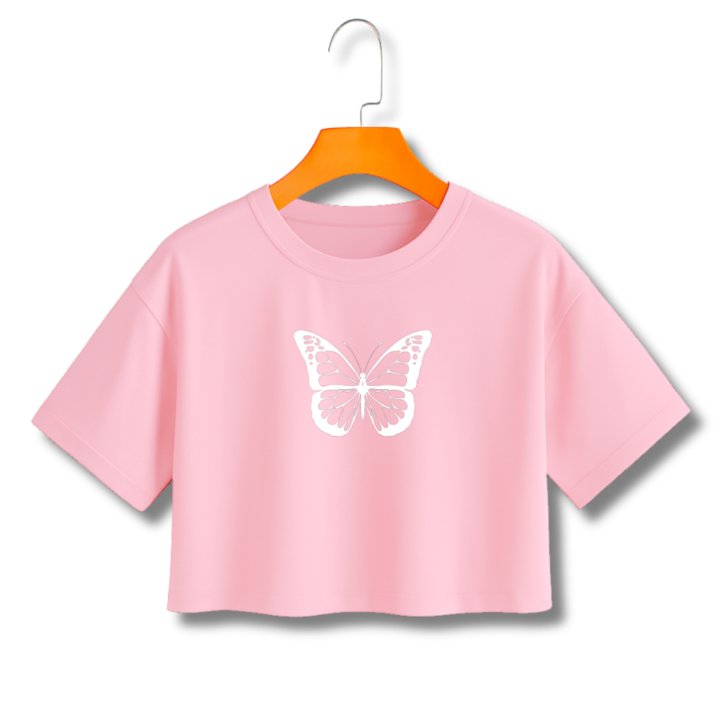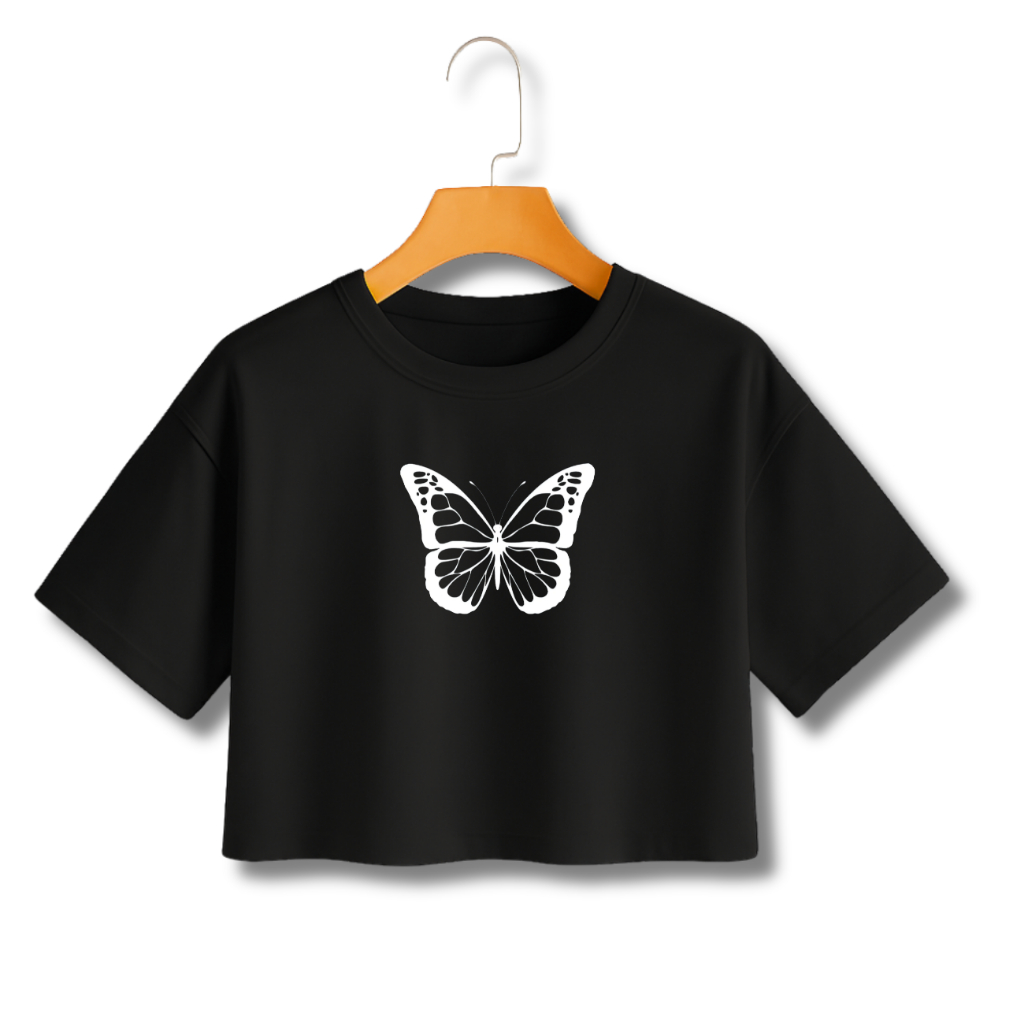 Camiseta Feminina Cropped BORBOLETA em Algodão 100% Lançamento