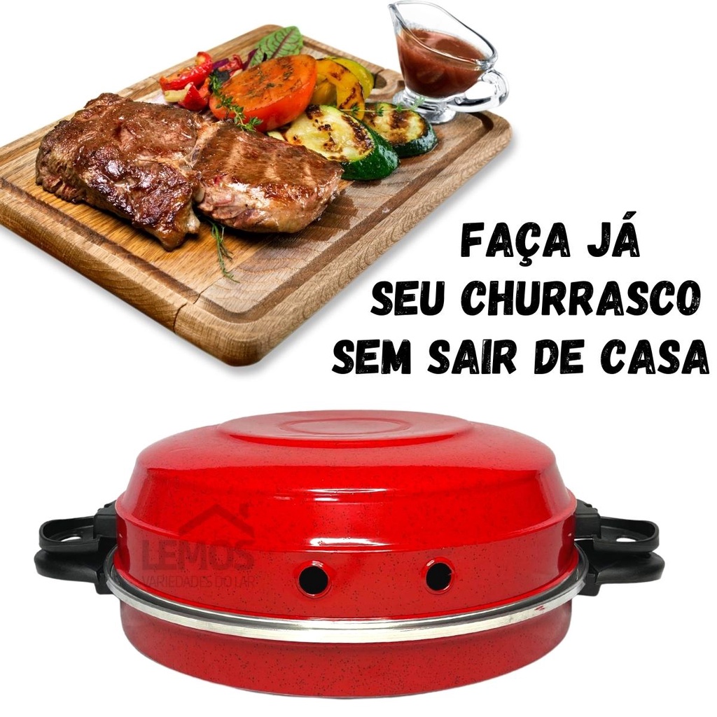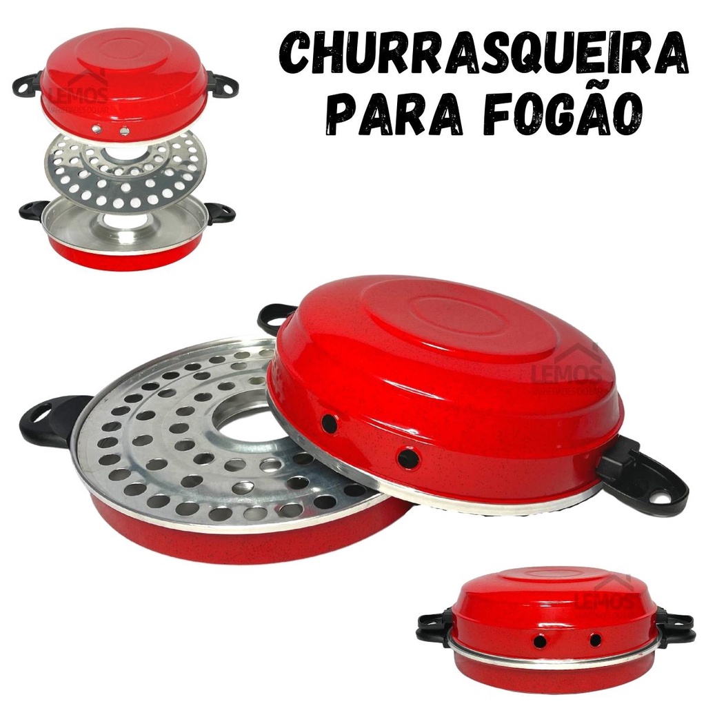 Churrasqueira Para Fogão Faz Grelhados Churrasco Assar Pães Carnes Peixes Frango Preta Vermelha Polida