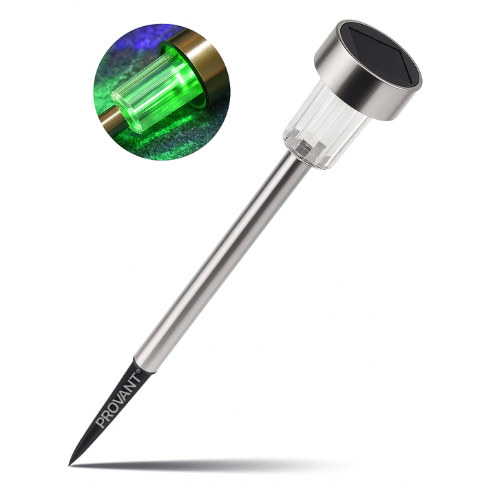Kit 2 Luminarias Solar RGB de Jardim Balizador Prata Espeto Chão Quintal