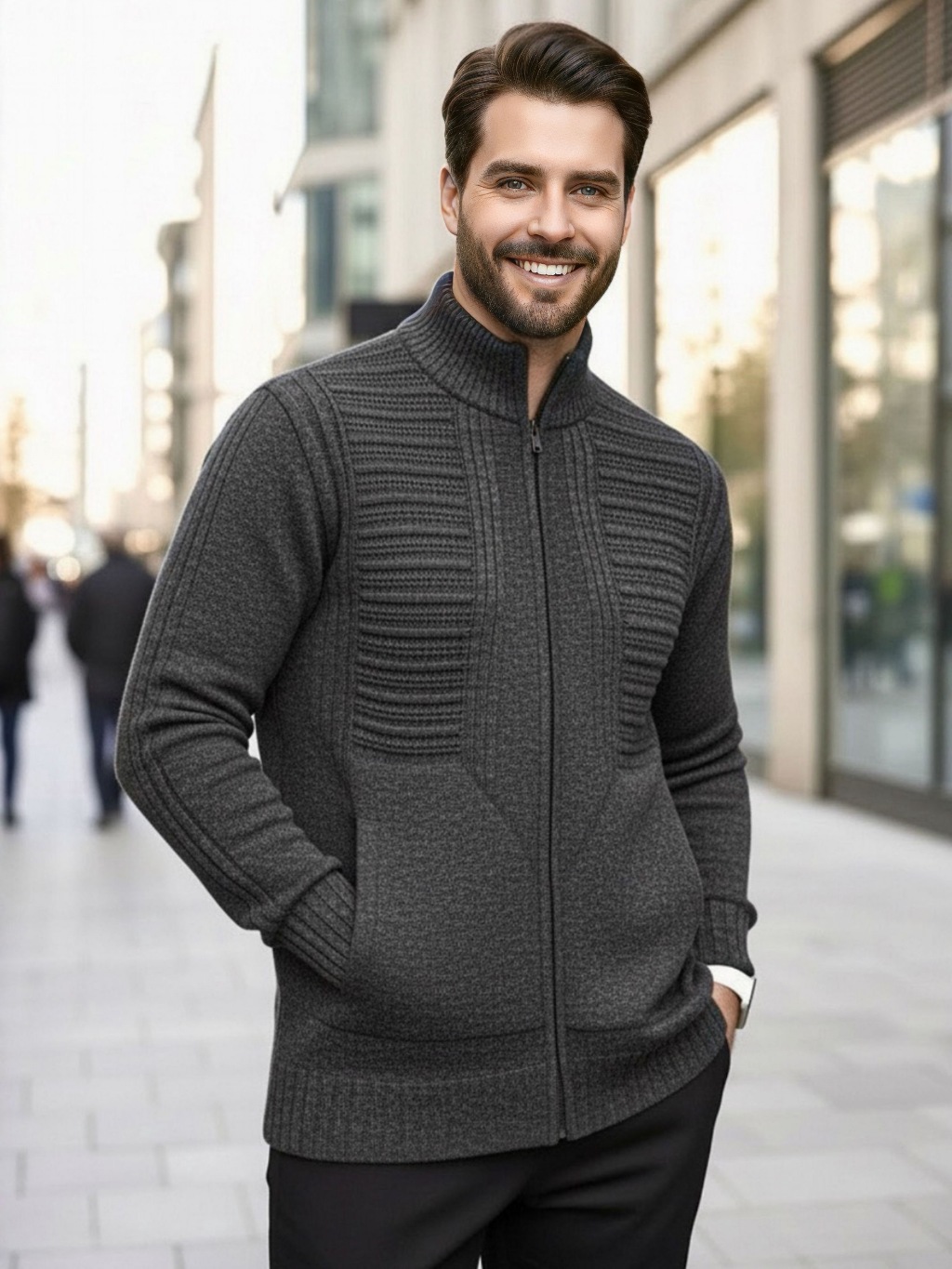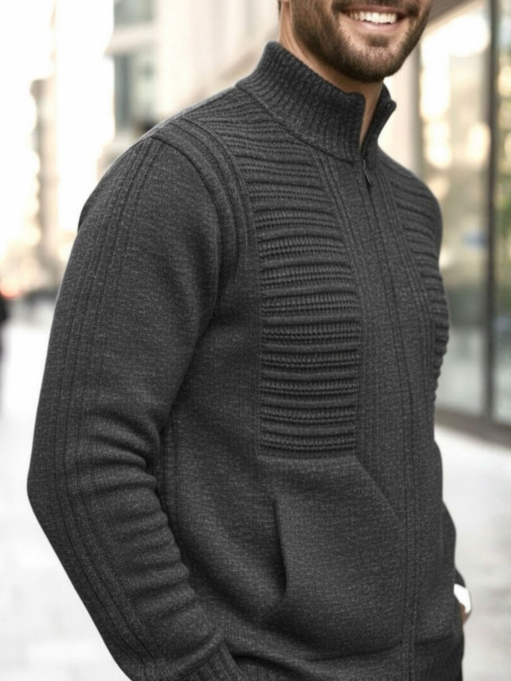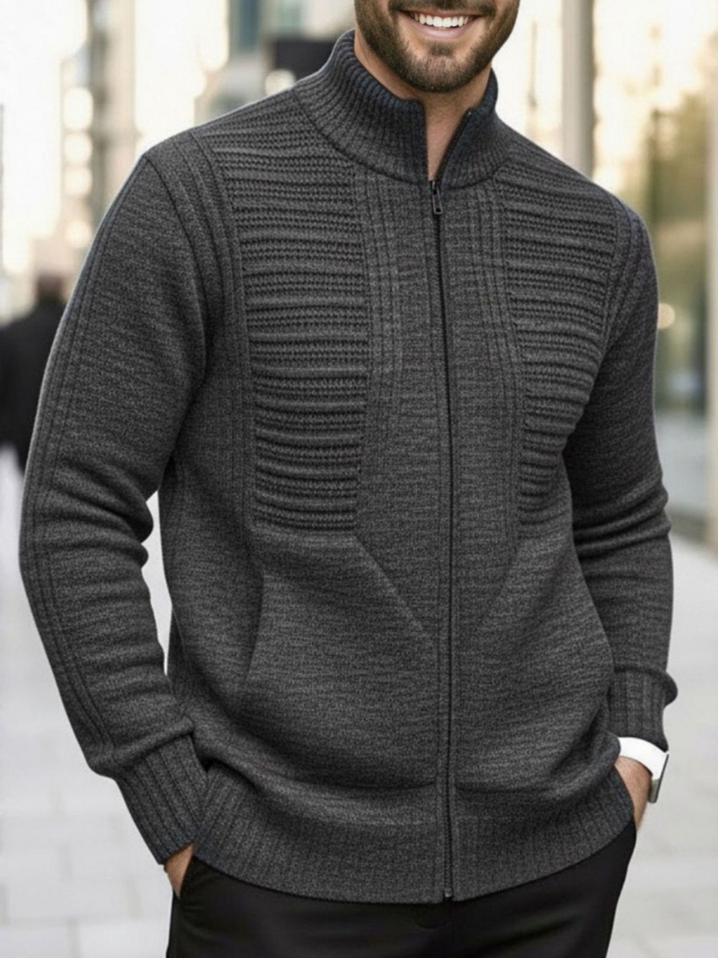 Sueter Masculino Cardigan Tricot Blusa De Frio Lã Com Bolso e Ziper