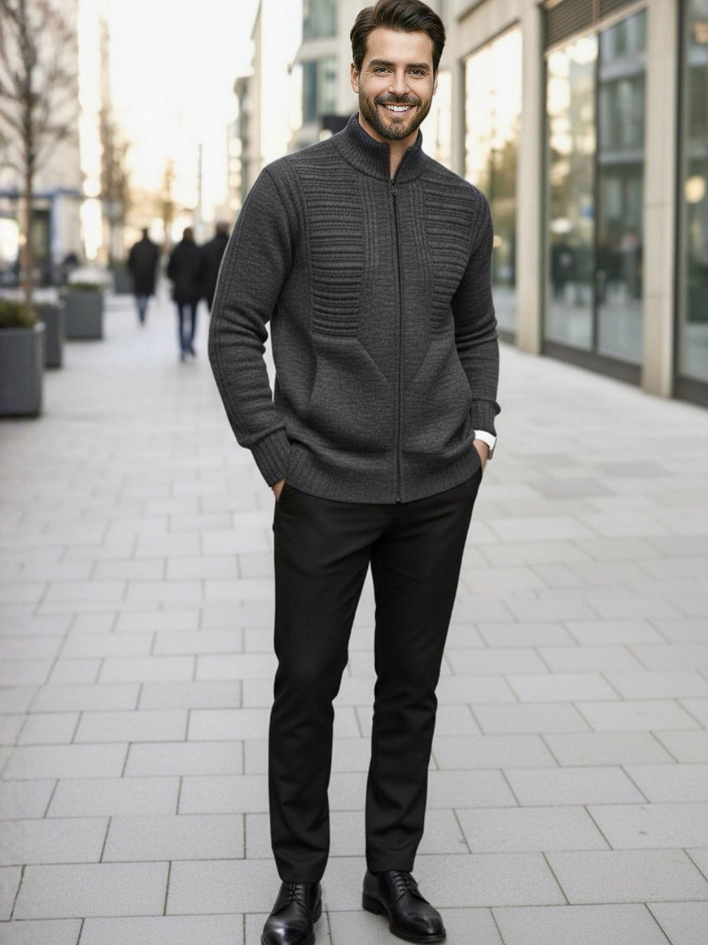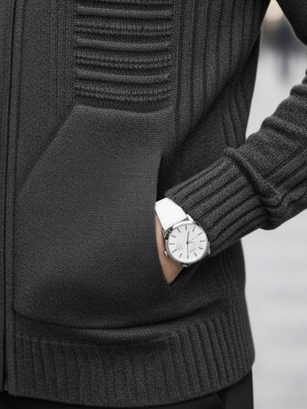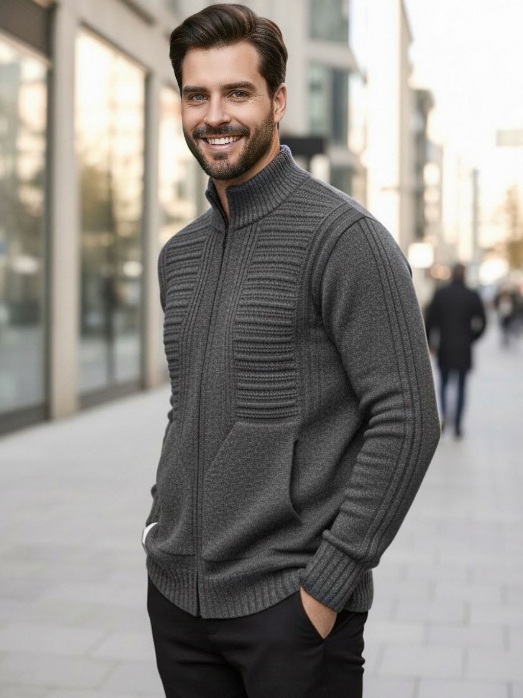 Sueter Masculino Cardigan Tricot Blusa De Frio Lã Com Bolso e Ziper