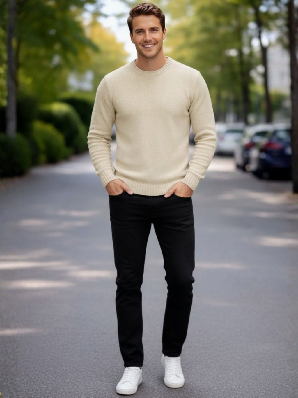 Blusa De Frio Masculina Lã Sueter Masculino Tricô Gola Redonda Básico