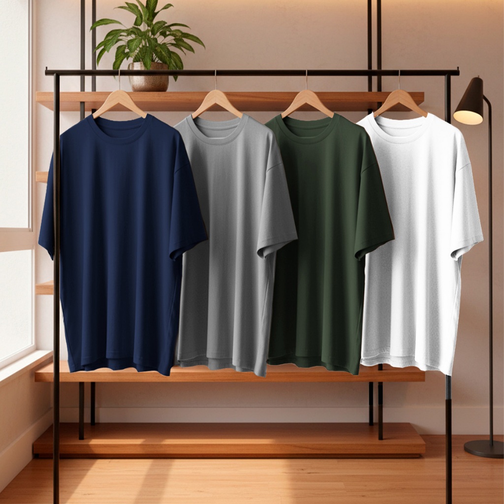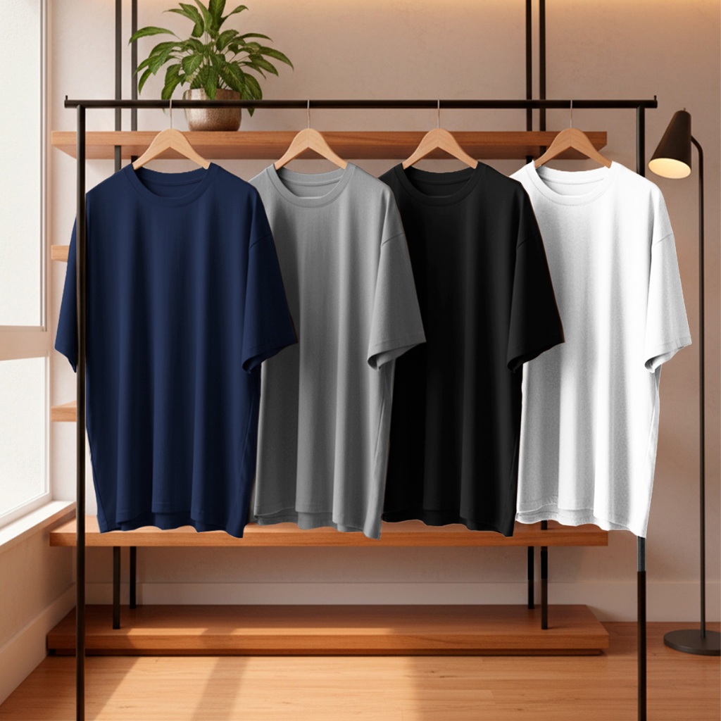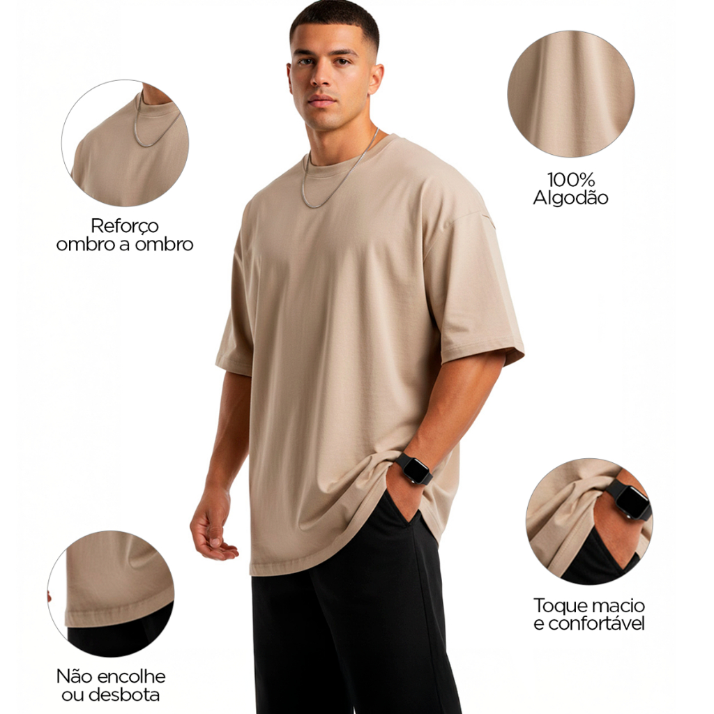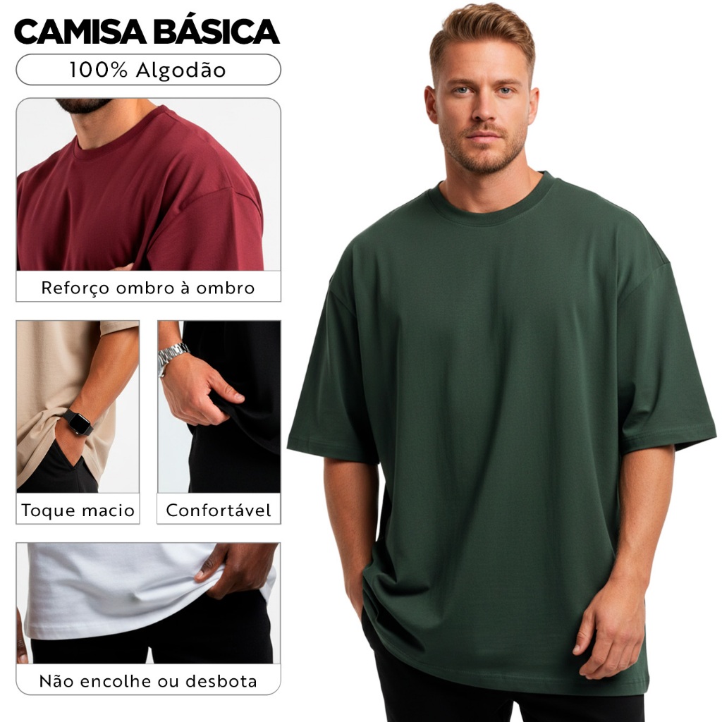 Kit 4 Camisetas Oversized Masculina 100% Algodão Casual Dia a Dia Treino Academia Slim Gola Redonda
