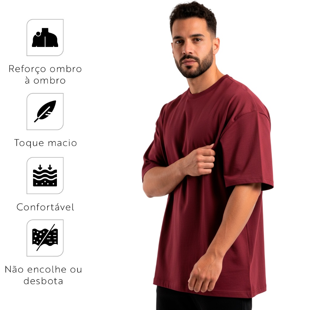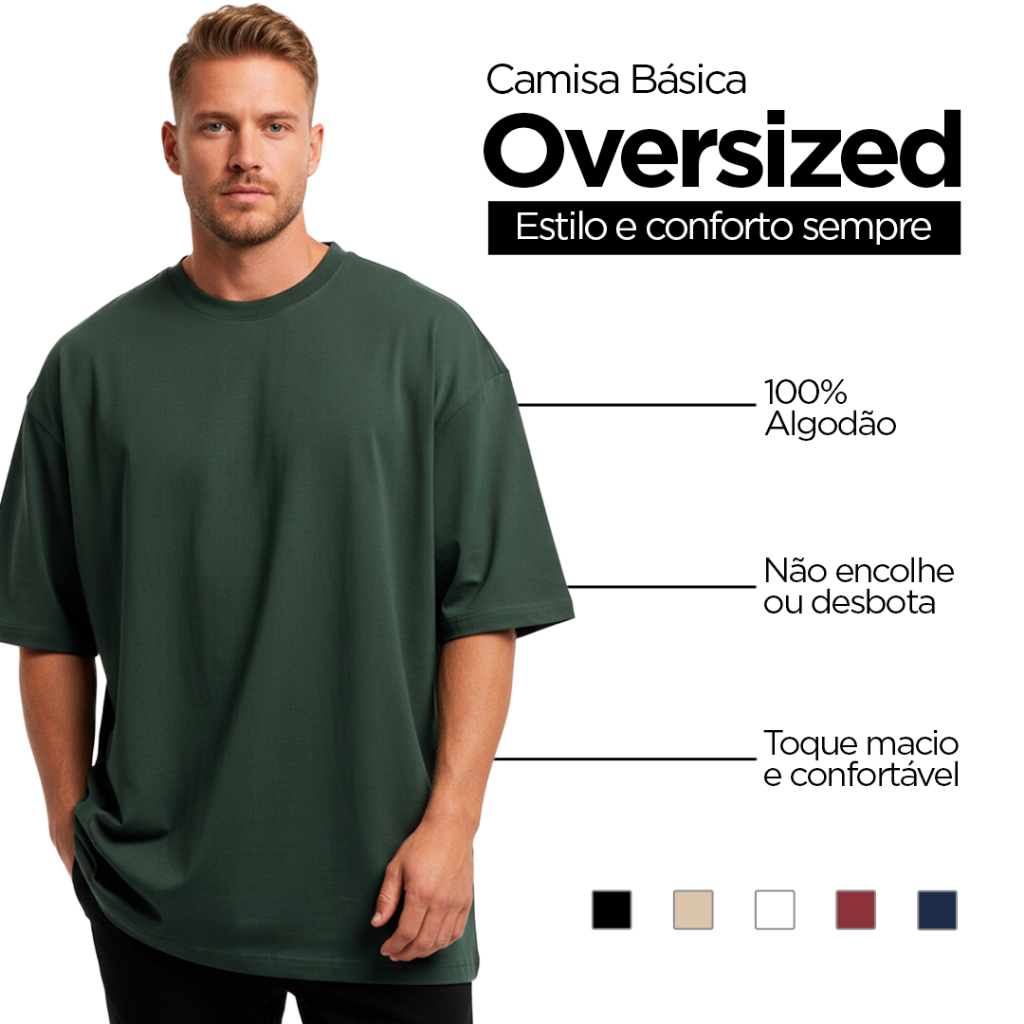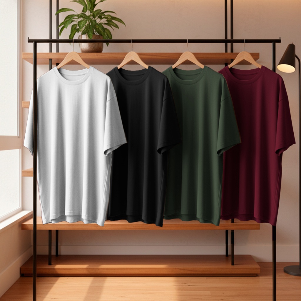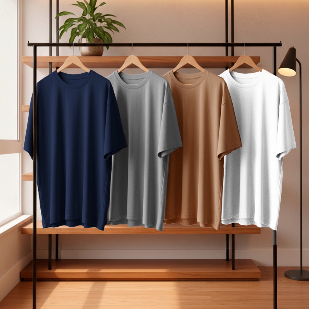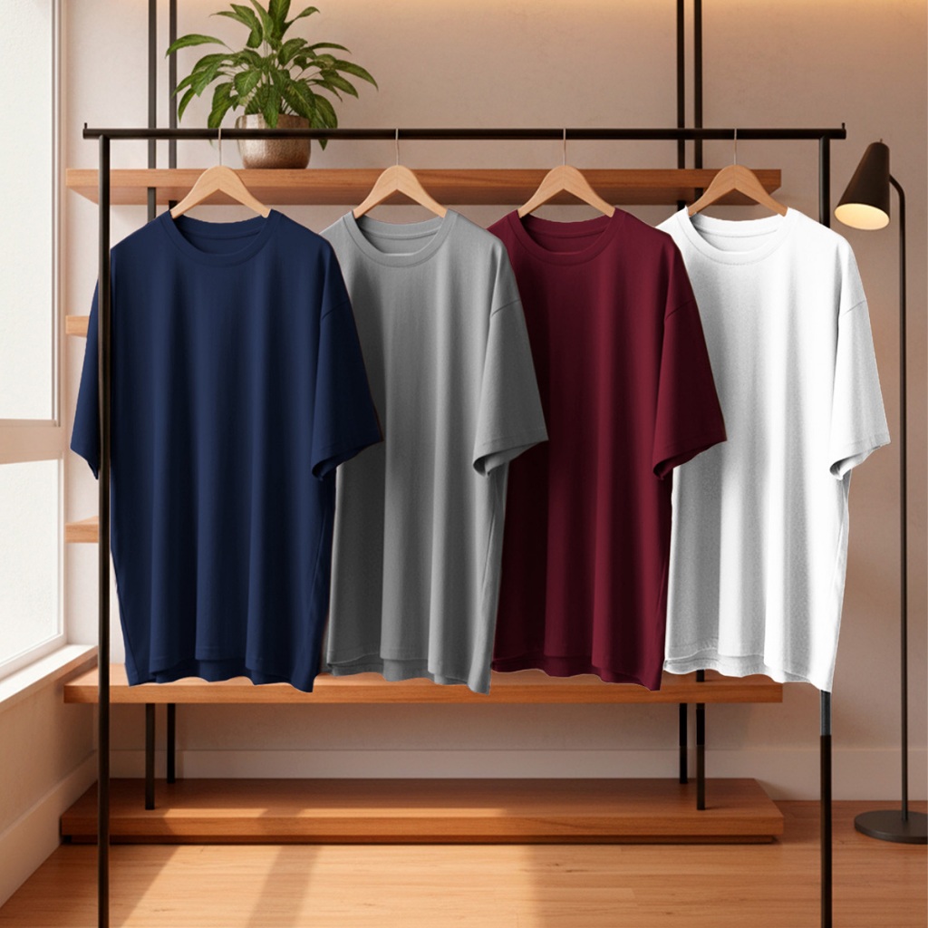 Kit 4 Camisetas Oversized Masculina 100% Algodão Casual Dia a Dia Treino Academia Slim Gola Redonda
