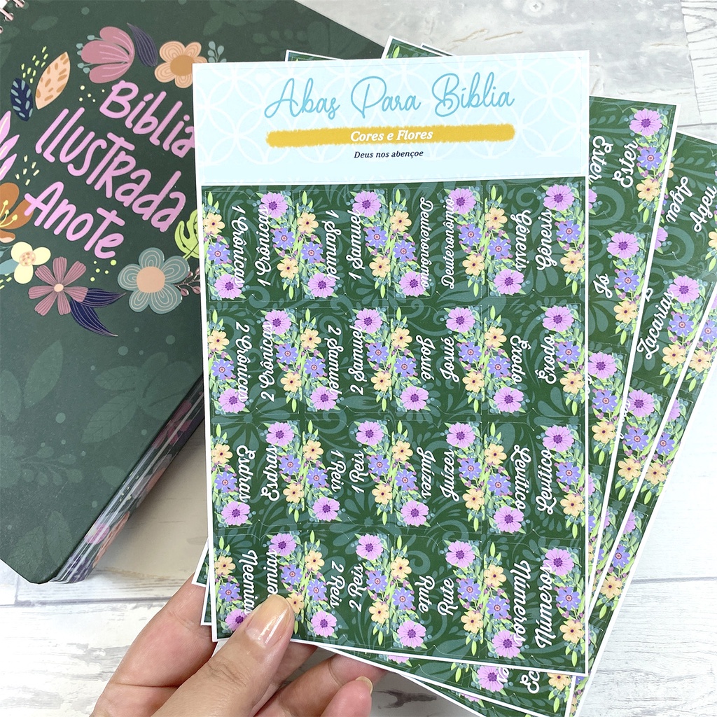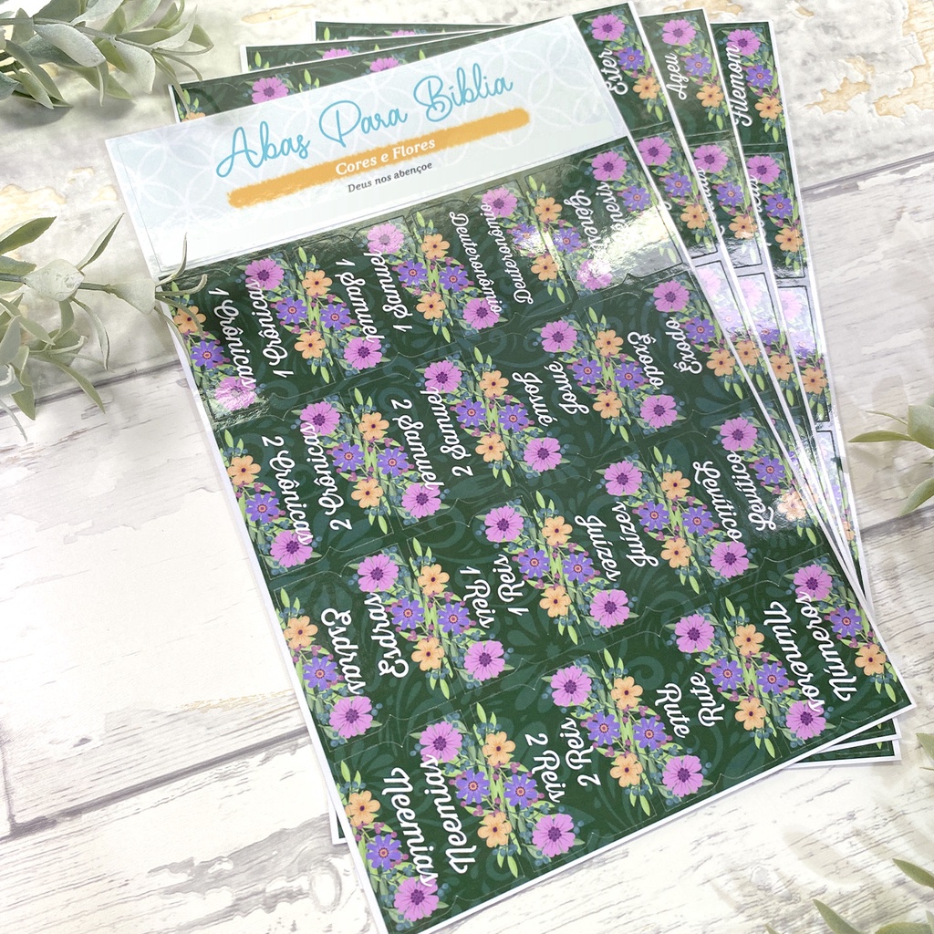 Abas Personalizadas para Bíblia | Cores e Flores | Marcador Adesivo Com Nomes Dos Livros | Índice Autocolante