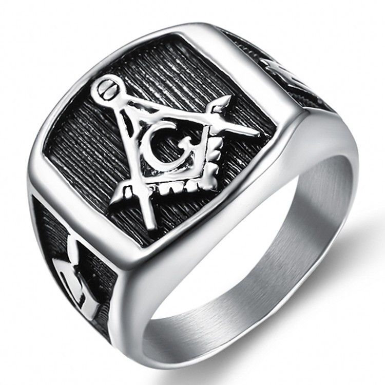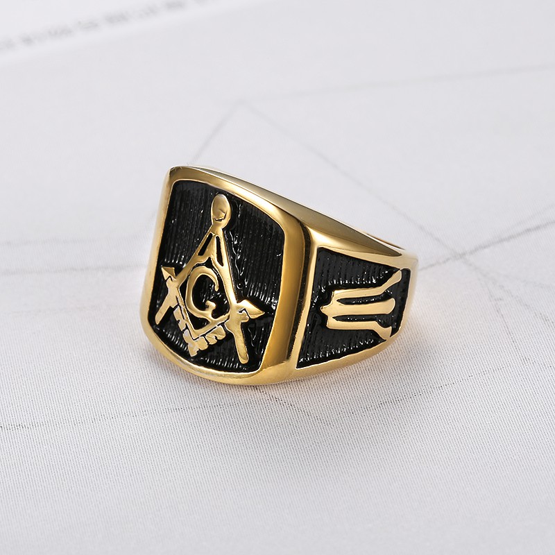 Anel Masculino De Aço Titânio Com Maçônico Tamanho 7-15