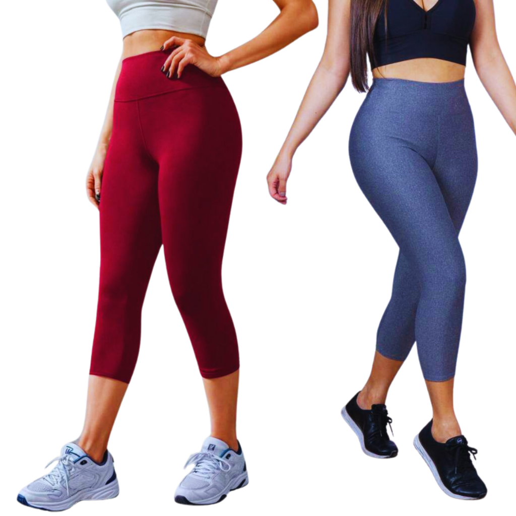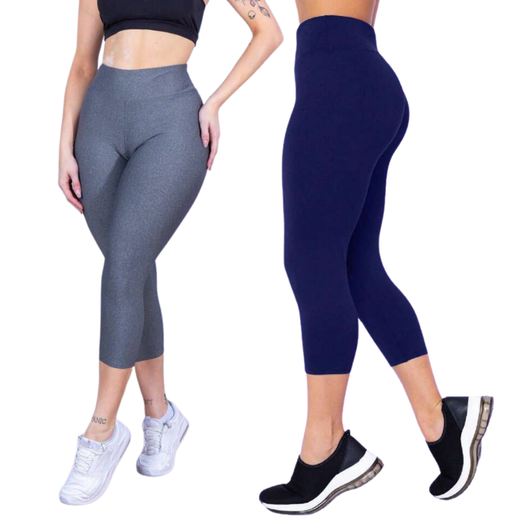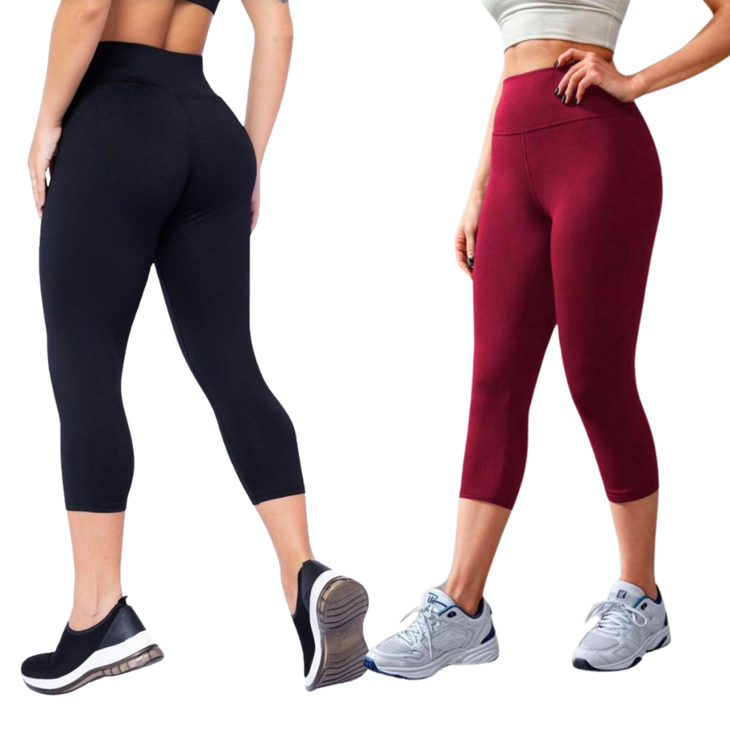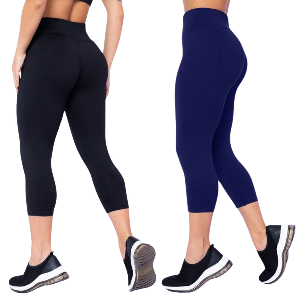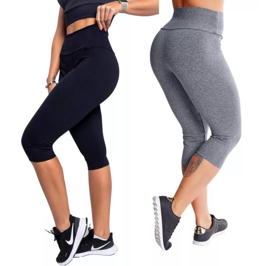 KIT 2 corsário Feminino capri legue lisa academia suplex Cos Alto