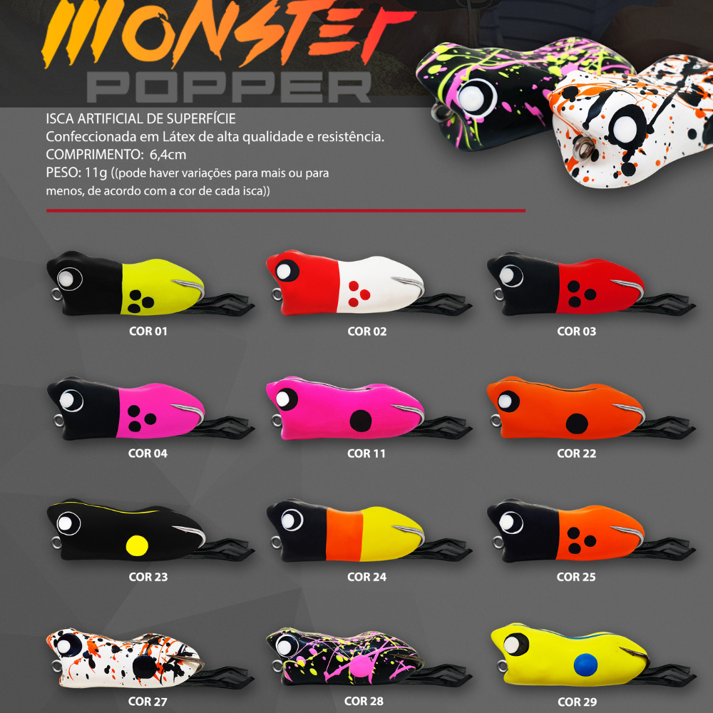 Isca Artificial Monster Popper Matadeira 6,4cm 11g Frog Traíra Sapo Sapinho Borracha Anti Enrosco