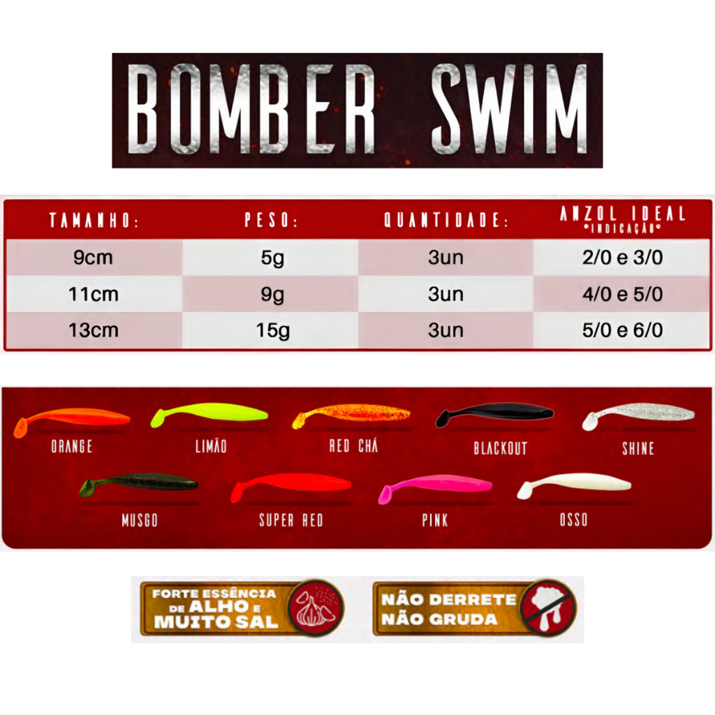 Isca Soft Artificial Bomber Swim Camalesma (3un) Shad com Padle Similar Slow Shad Traíra Traírão