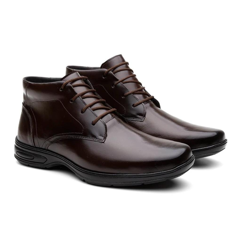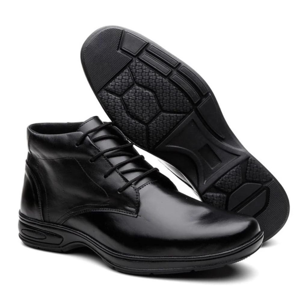 Kit 2 Bota Masculina Ortopédica Sola Antiestress Coturno de Couro Legitimo Botina Social Confortável