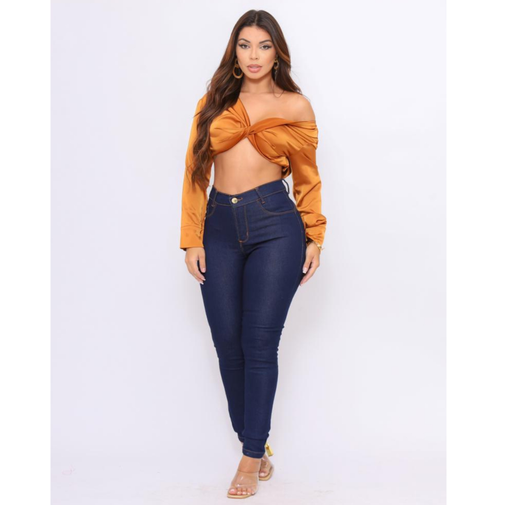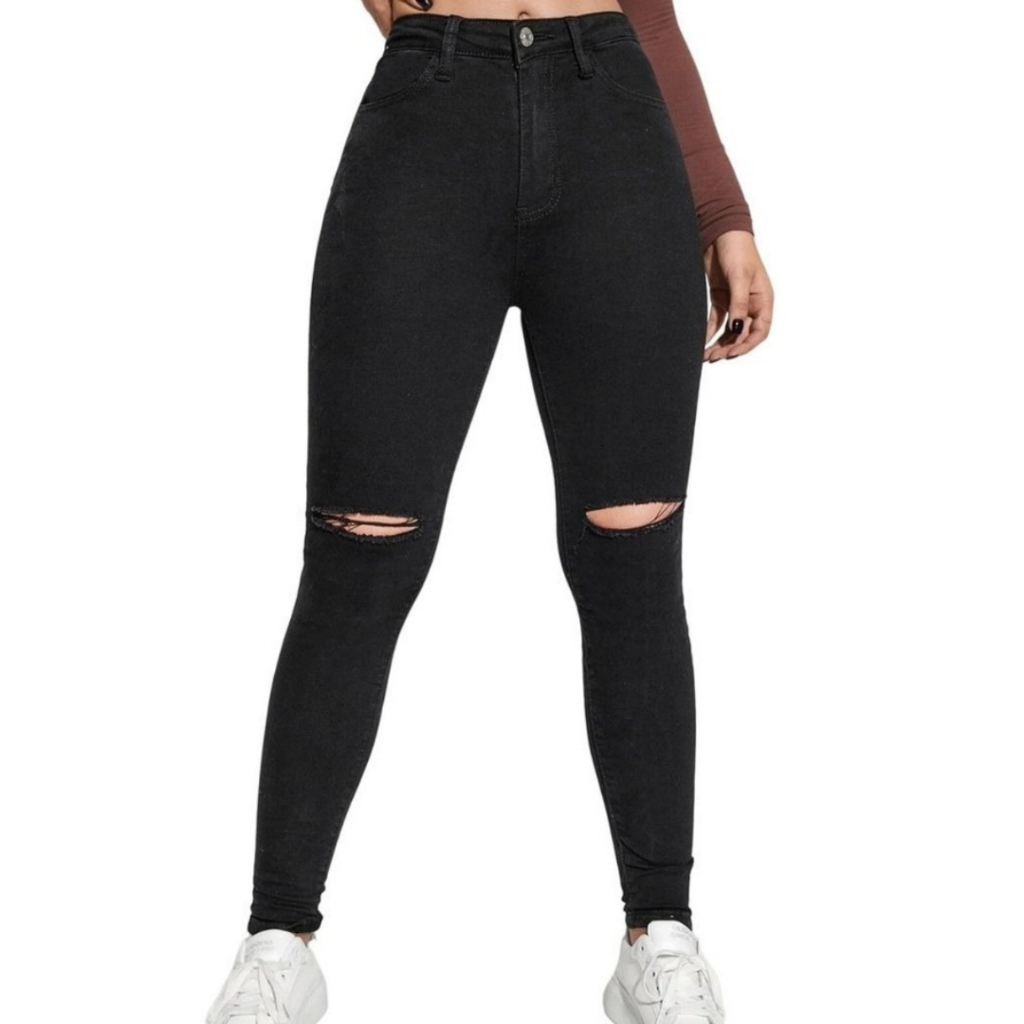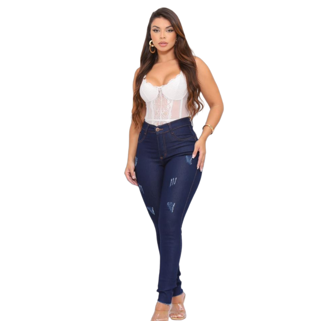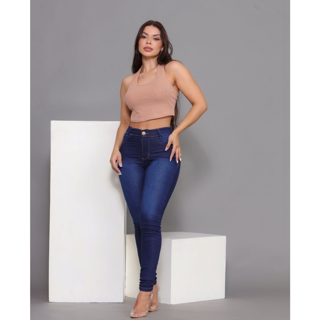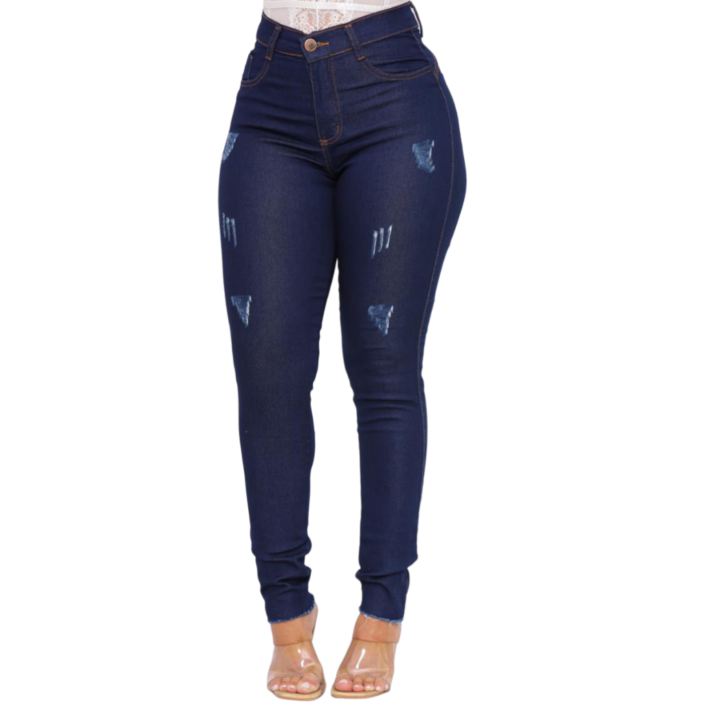 Calça Jeans Feminina Cintura Alta Levanta Bumbum Com Lycra Destroyed
