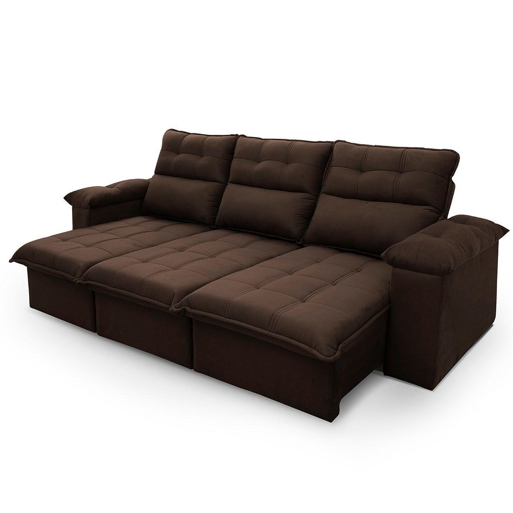 Sofá Retrátil Reclinável Verona 2,30m Suede Velut Marrom Molas no Assento - King House