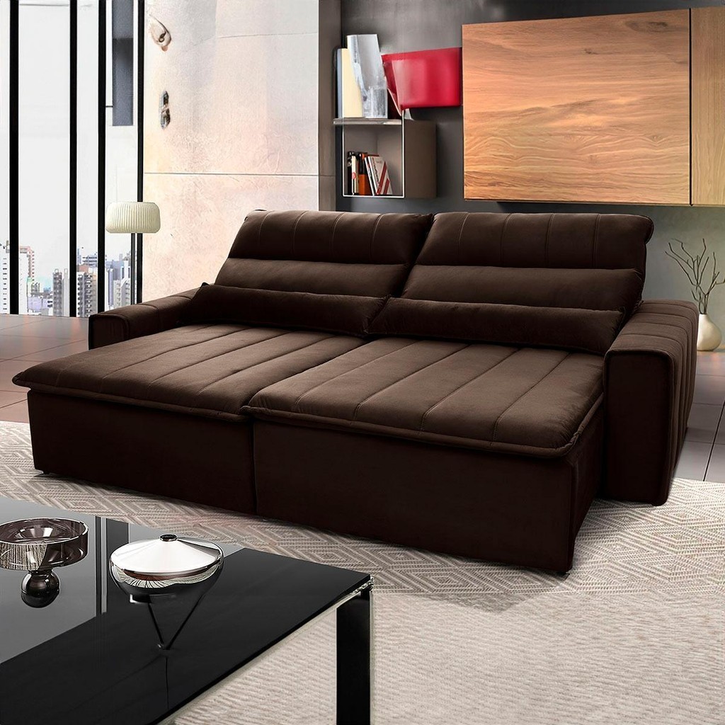 Sofá Retrátil Reclinável Patagônia 2,50m Suede Velut Marrom Molas no Assento - King House