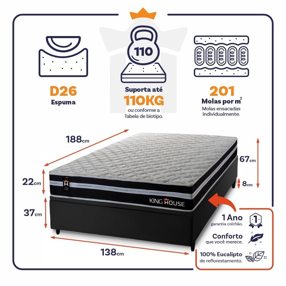 Conjunto Box Baú Durham Preto 138x188x67 c/ Molas Ensacadas