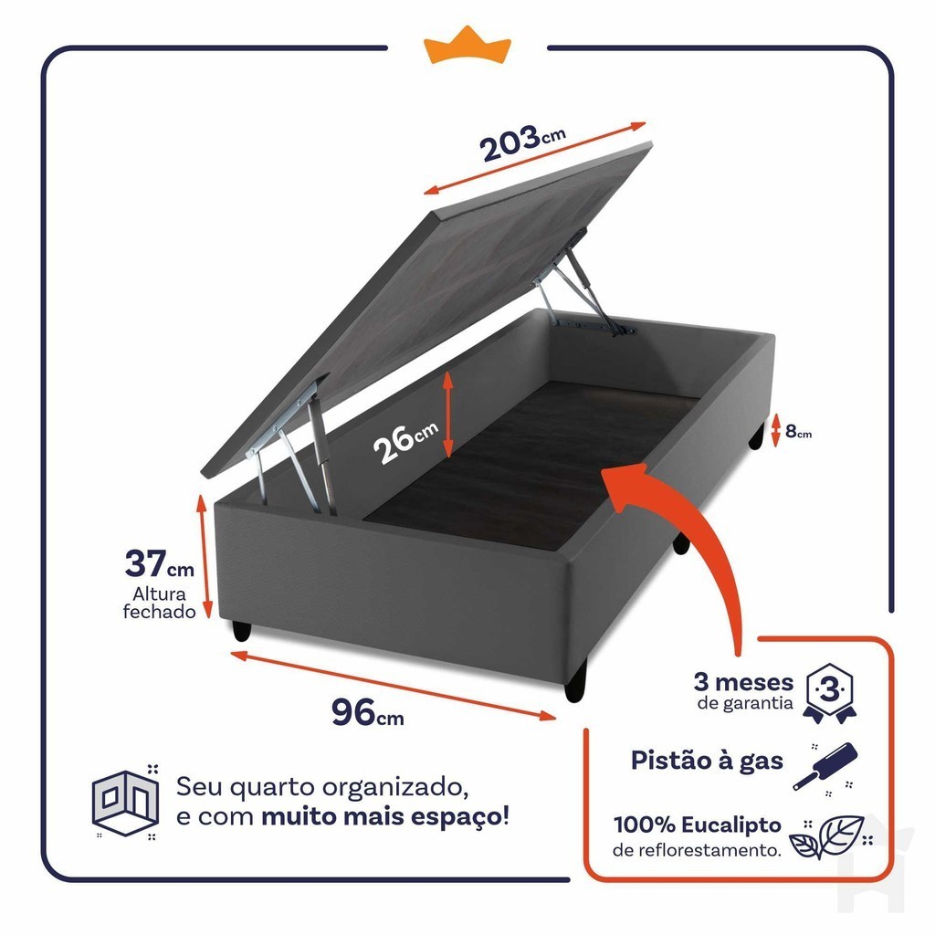 Box Baú Cinza Solteiro 96x203x45 - King House