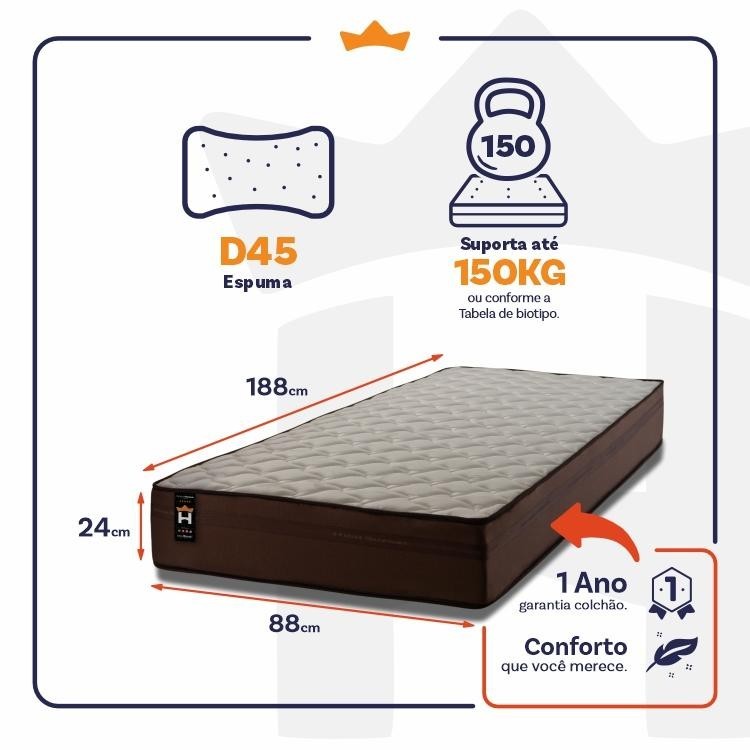 Colchão Espuma D45 Atlanta Solteiro 88x188x24 Marrom