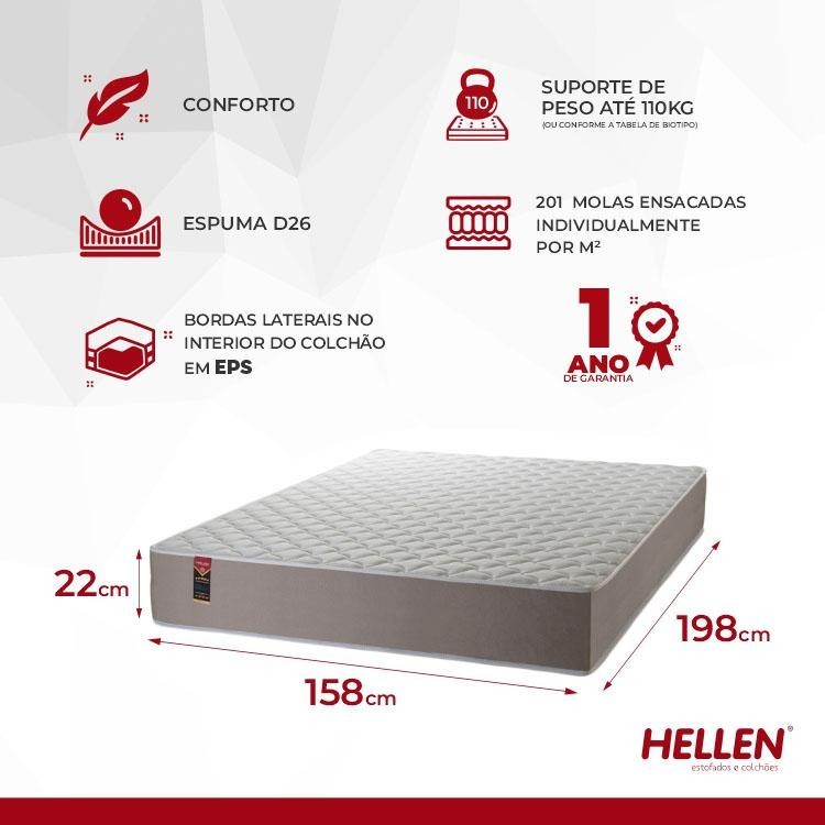 Colchão Queen Size Alpha Special 158x198x22 Bege Molas ensacadas - Hellen