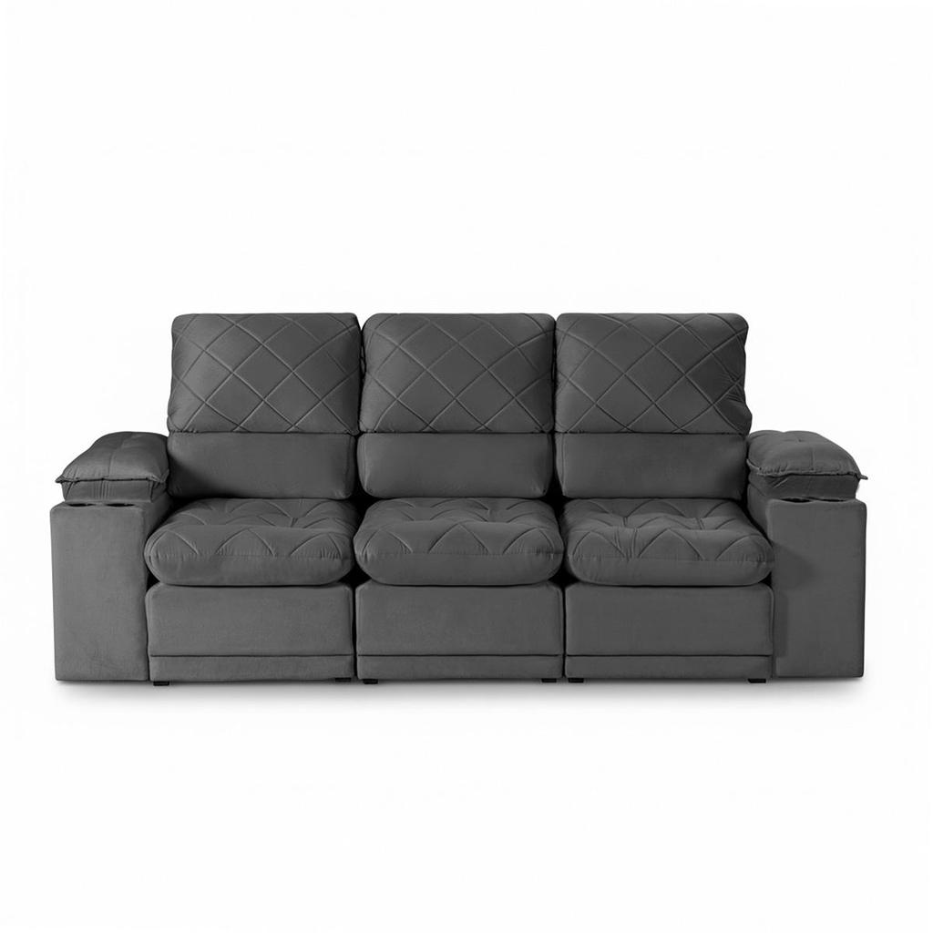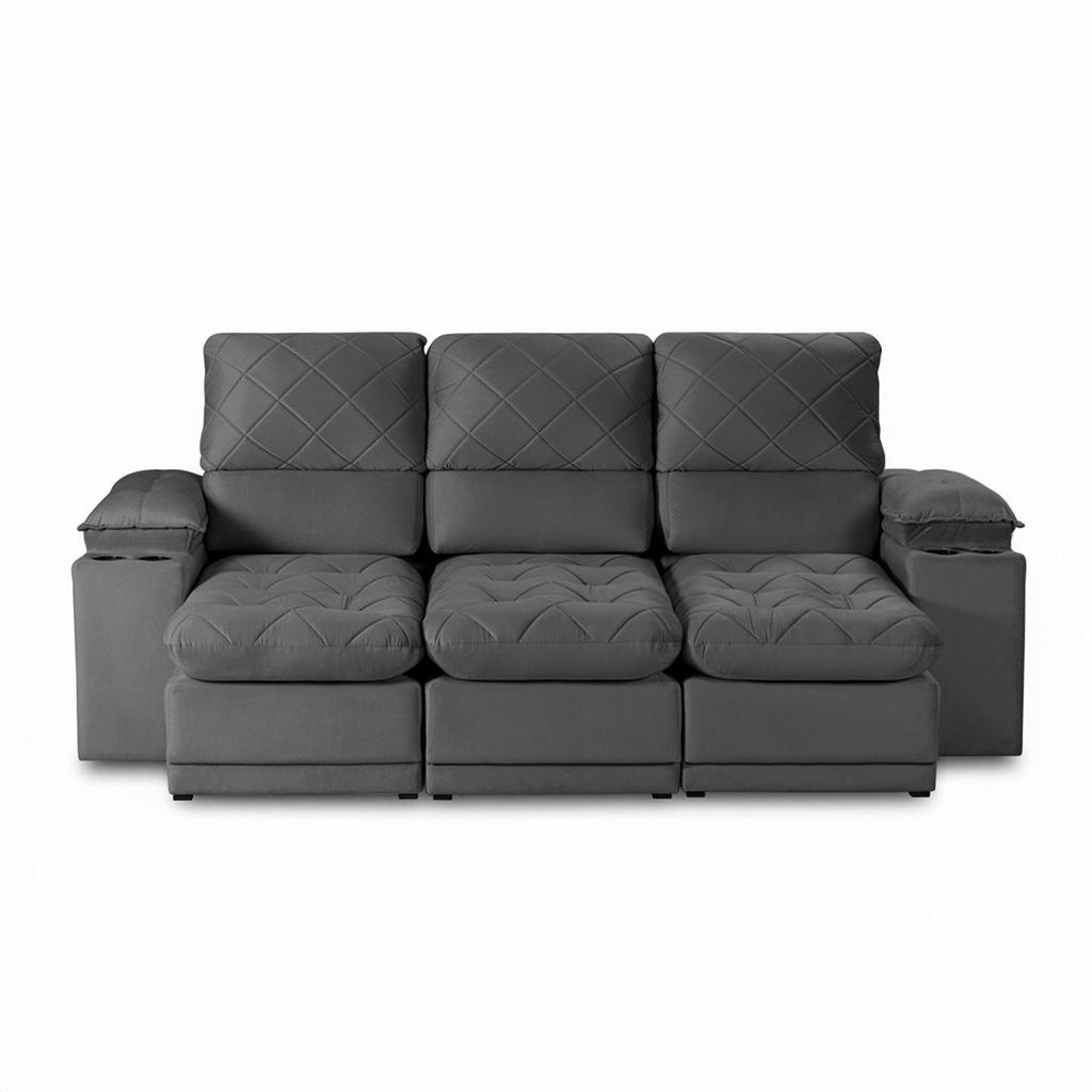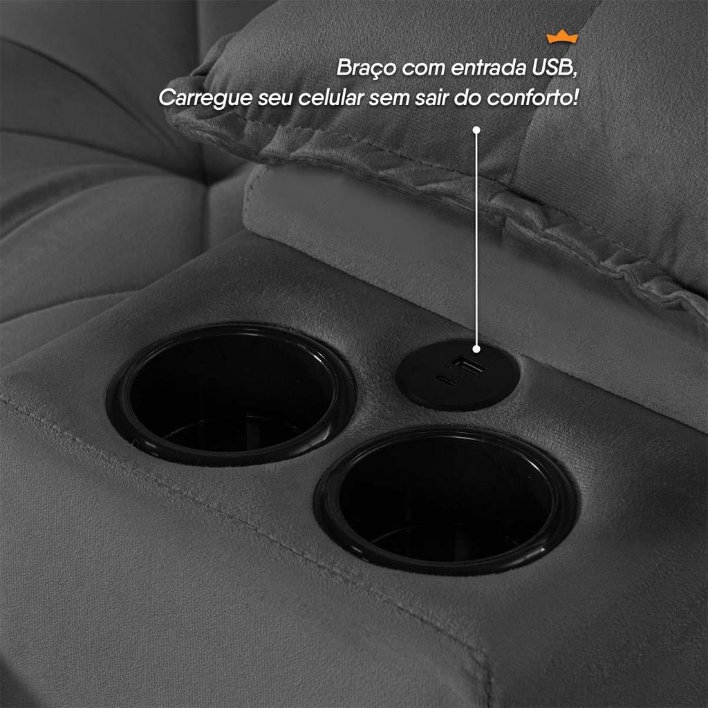 Sofá Veneza 2,40m Retrátil Reclinável Grafite USB e Porta Copos - King House