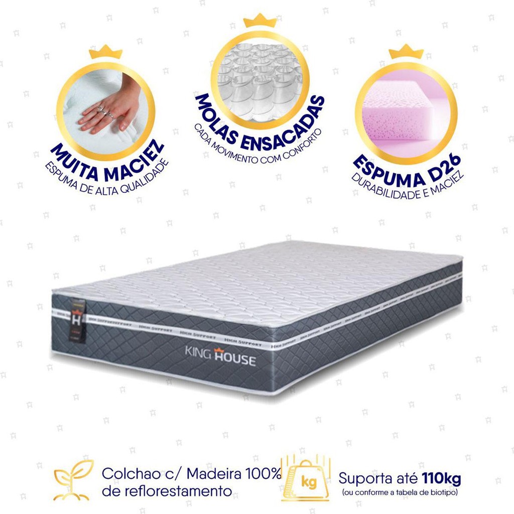 Colchão Cairo Cinza Molas Ensacadas Solteiro 88x188x26 - King House