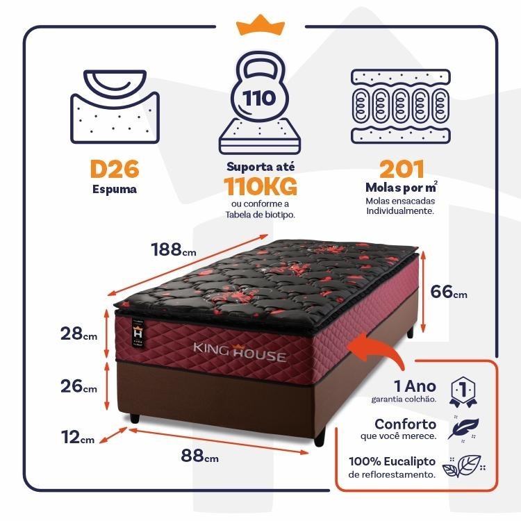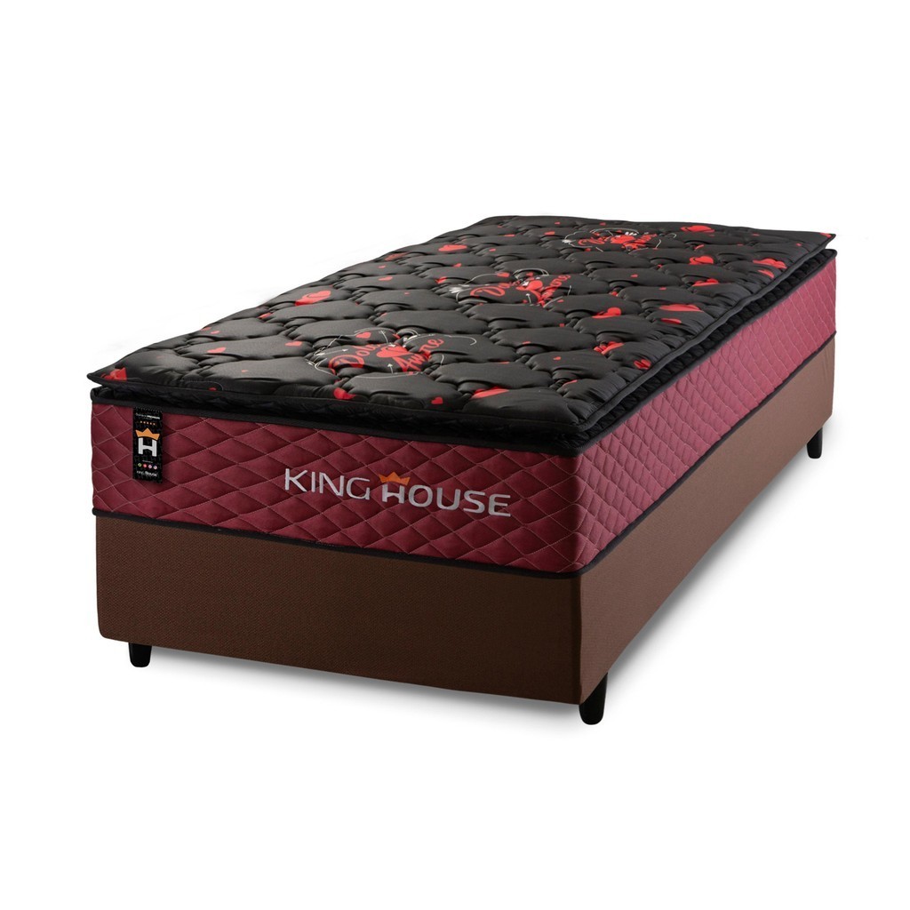 Conjunto Cama Box c/ Molas Ensacadas Toronto Vermelho Solteiro 88x188x66