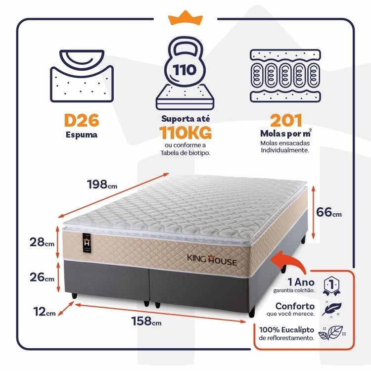 Conjunto Cama Box c/ Molas Ensacadas Alford Bege Queen 158x198x66